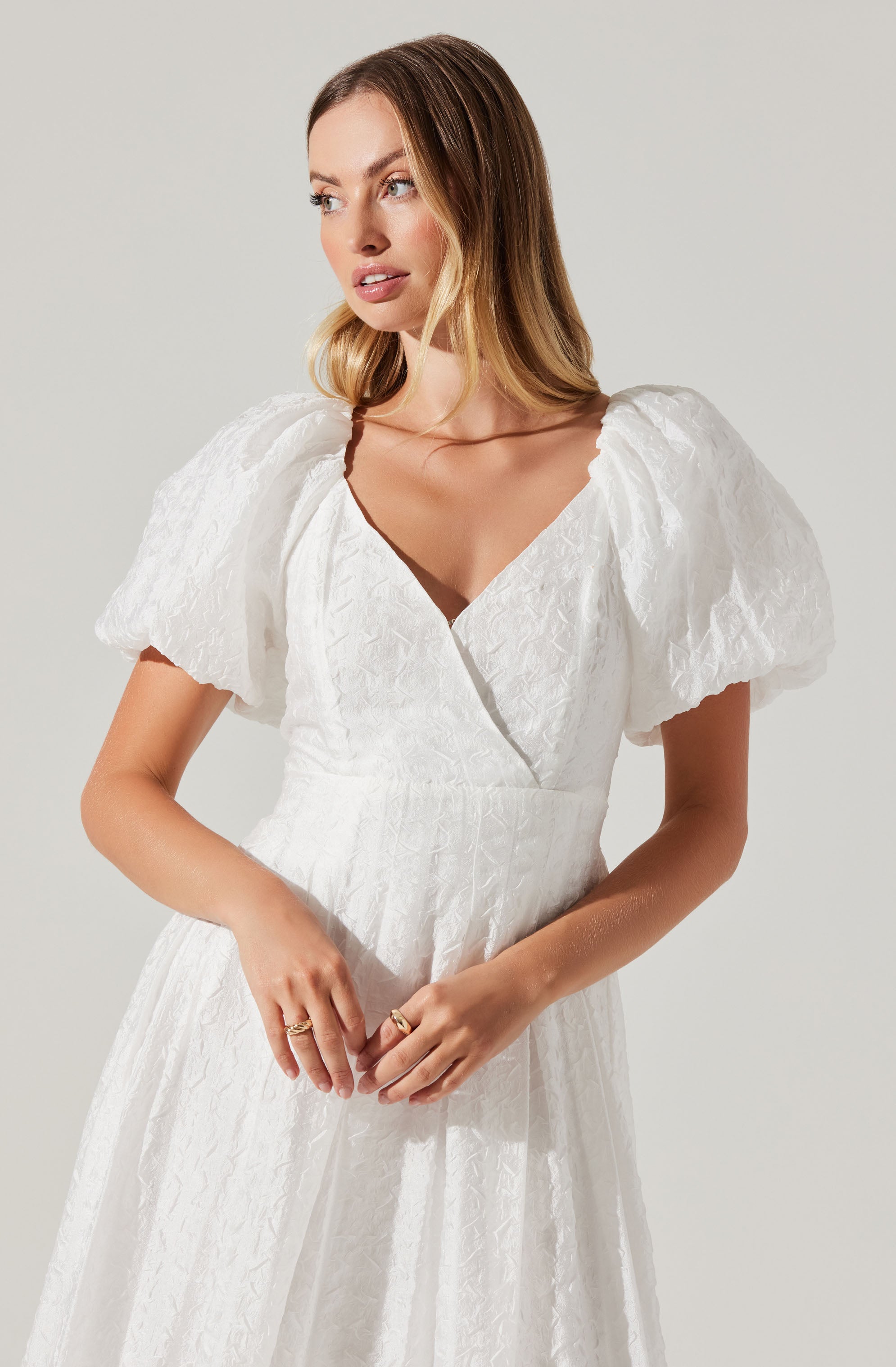 Popcorn Waist Midi Dress