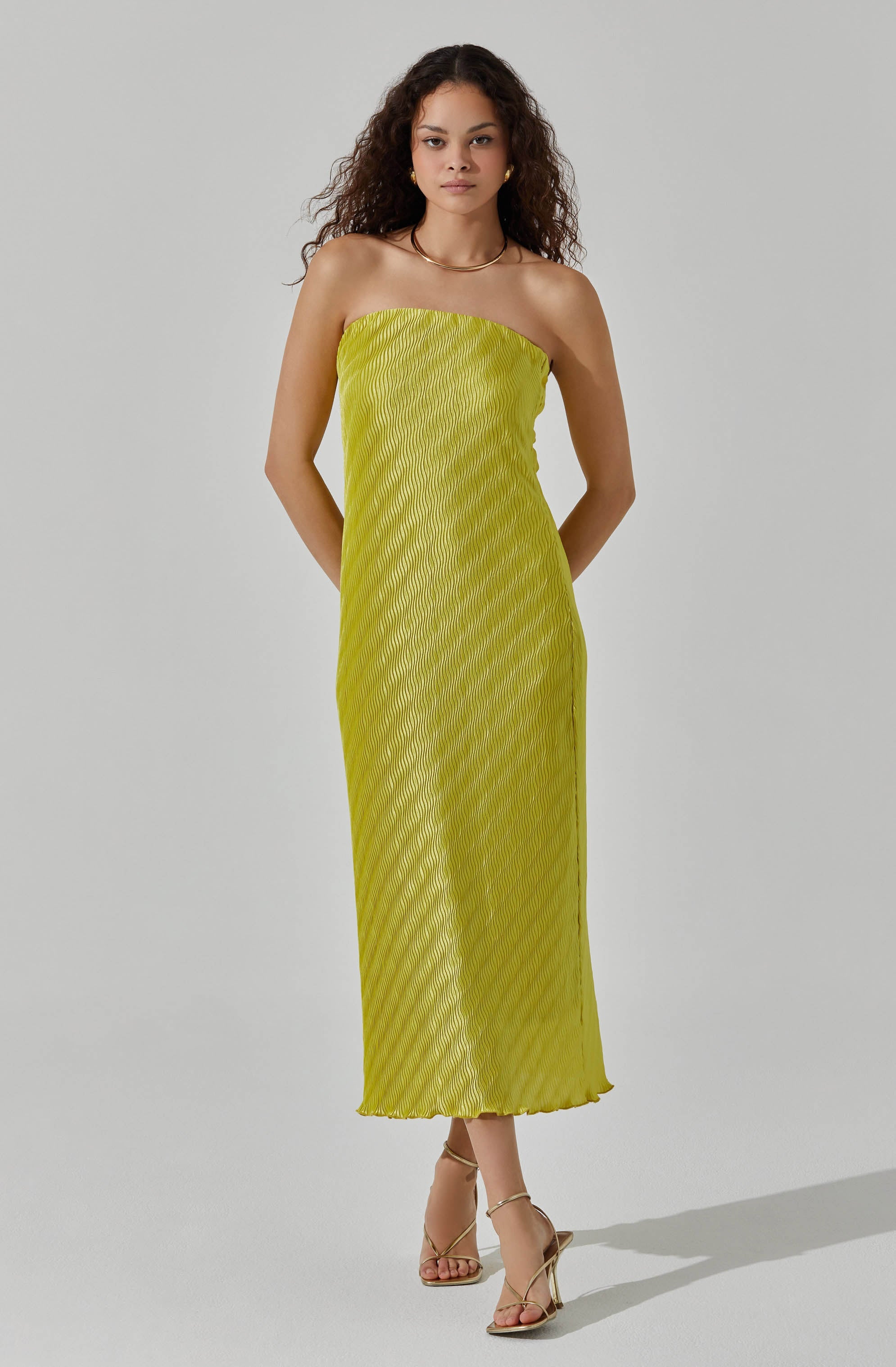 Plisse Tube Midi Dress