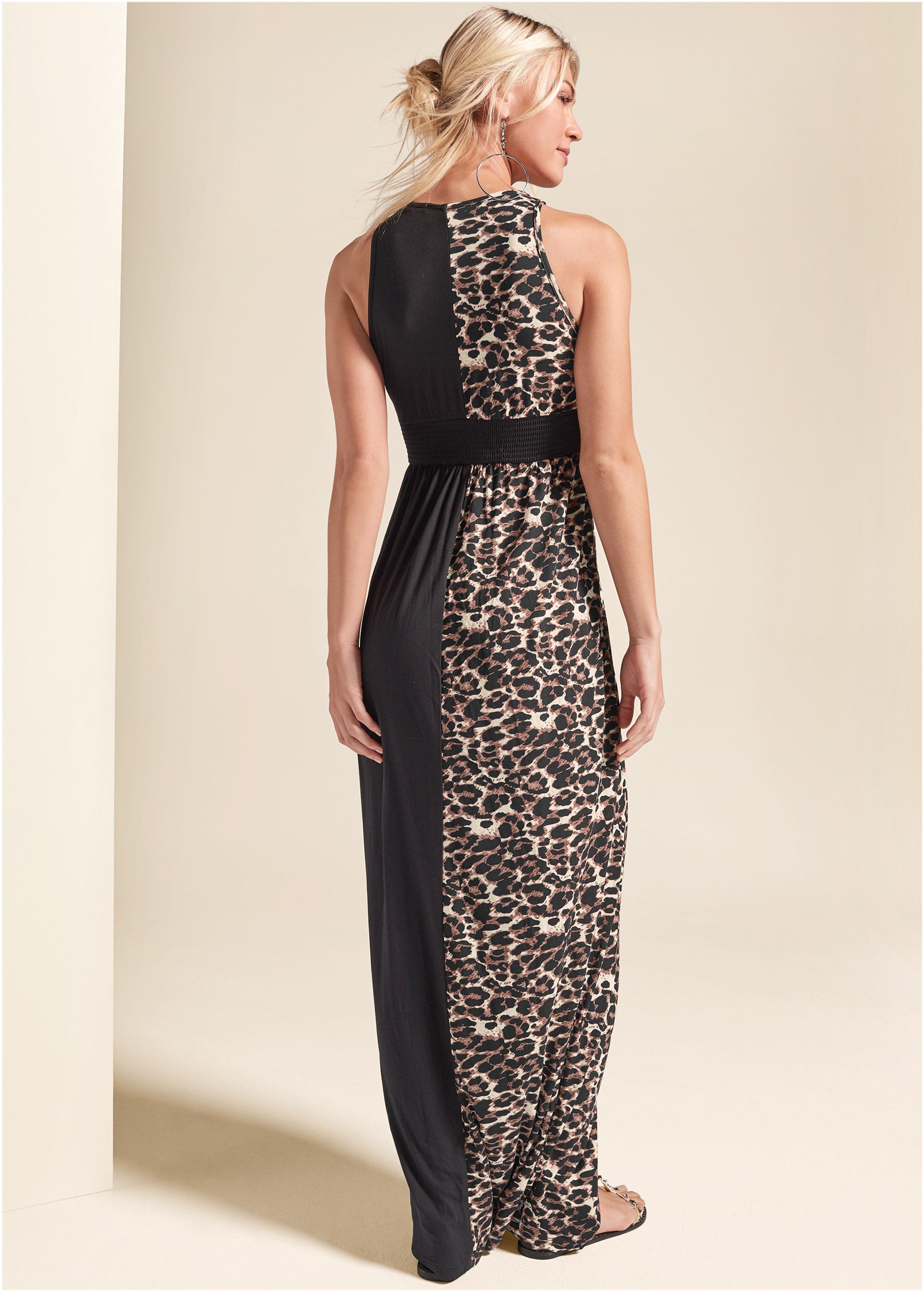 Leopard Detail Maxi Dress - Black Multi