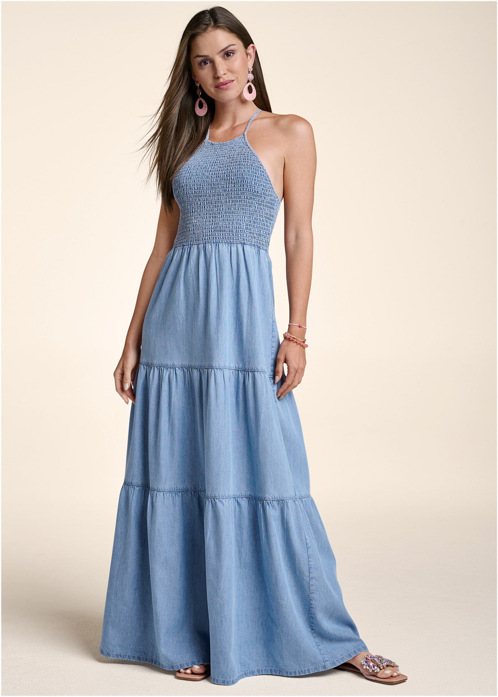 Chambray Tiered Maxi Dress - Medium Wash