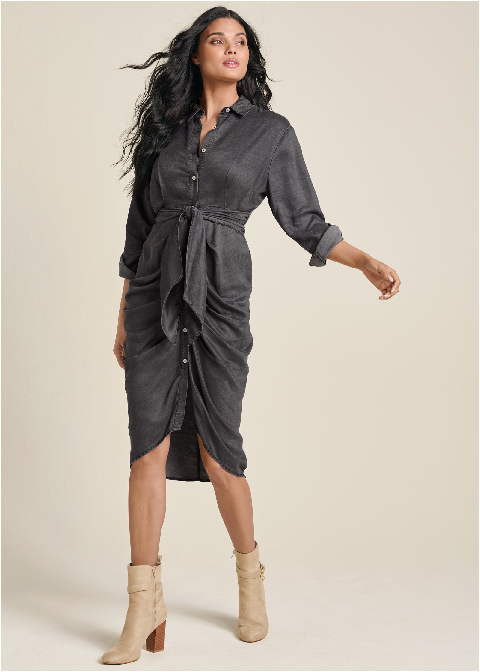 Button-Front Shirt Dress - Grey