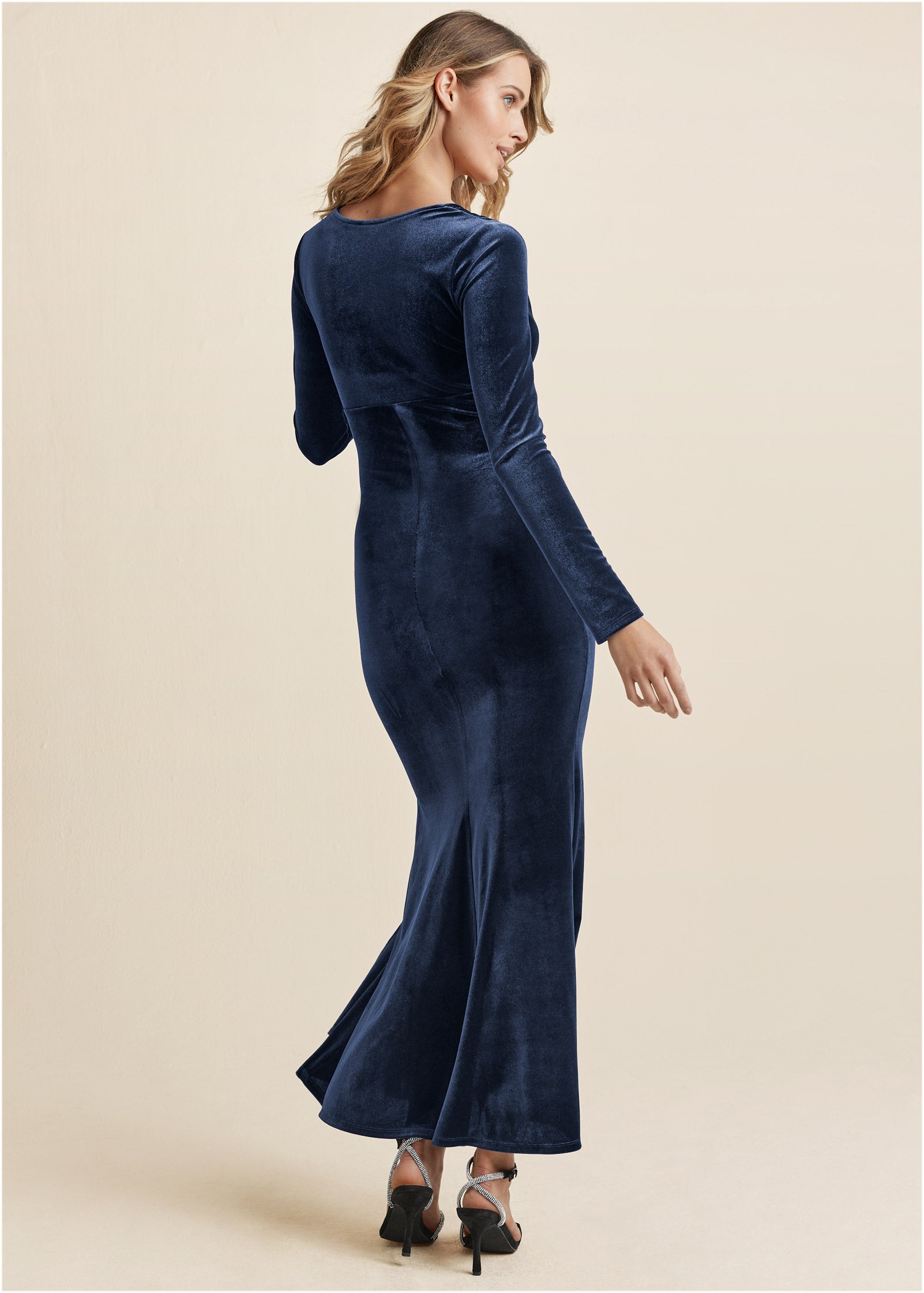 Ruched Velvet Maxi Gown - Navy
