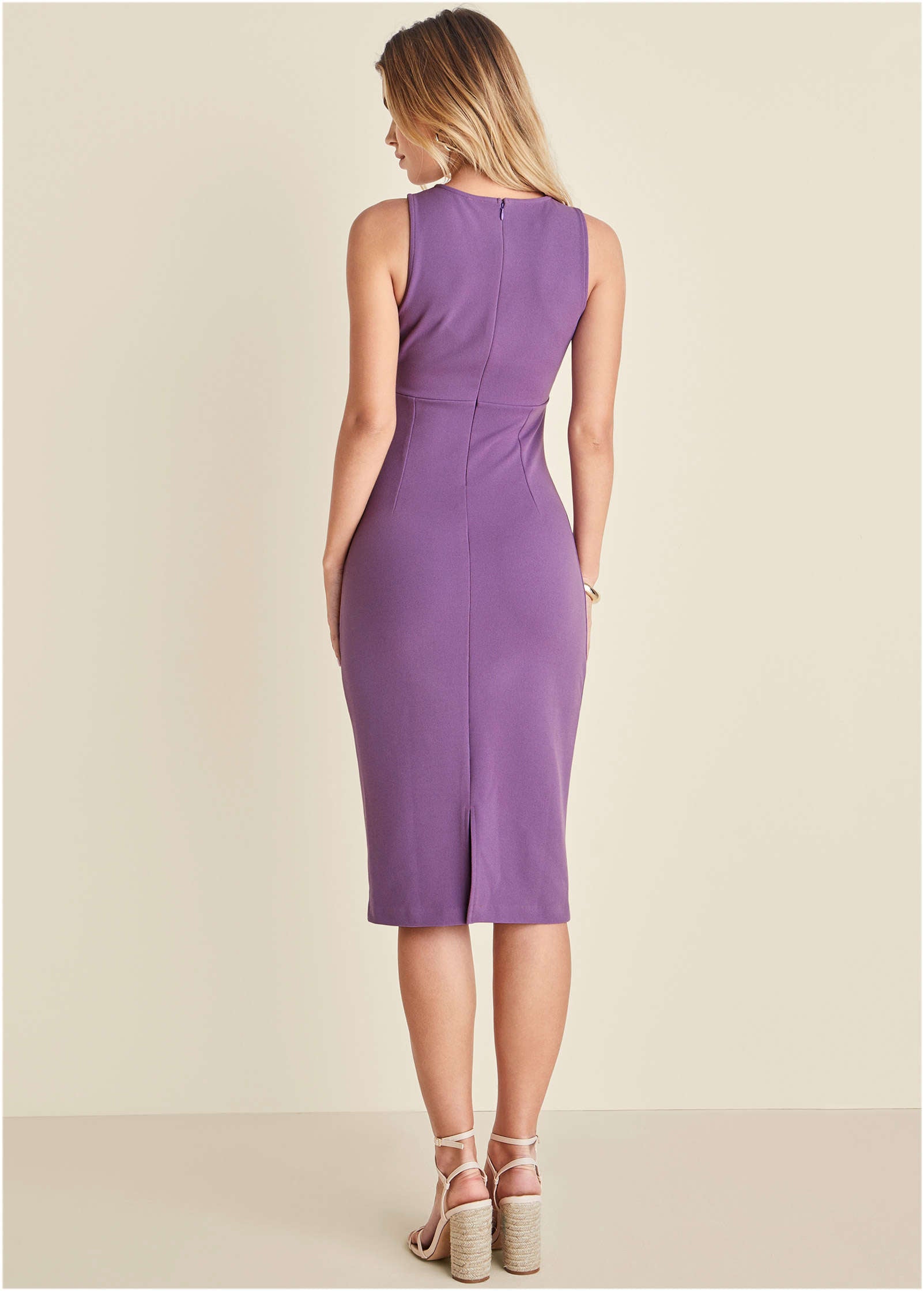 Twist Front Midi Dress - Purple