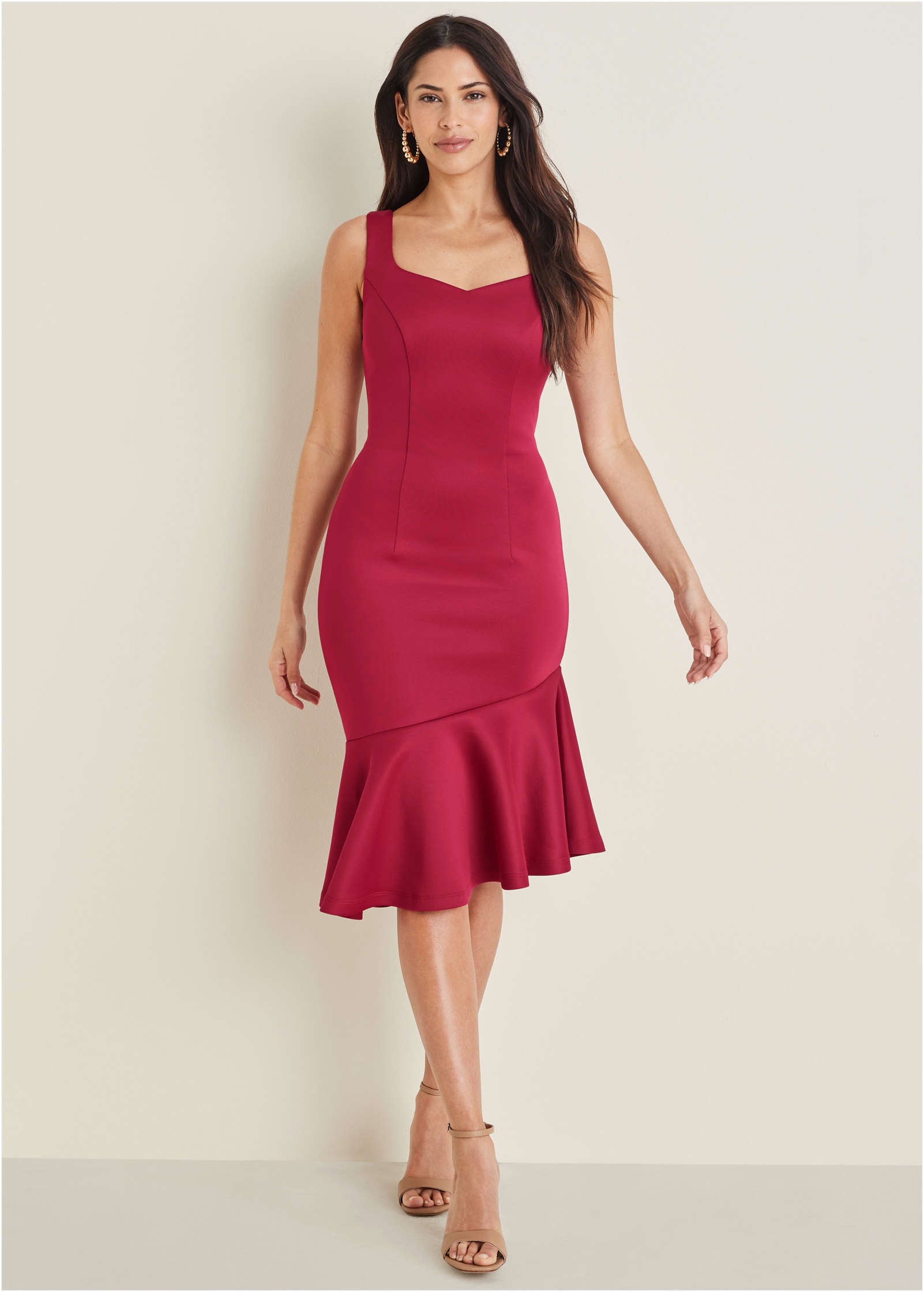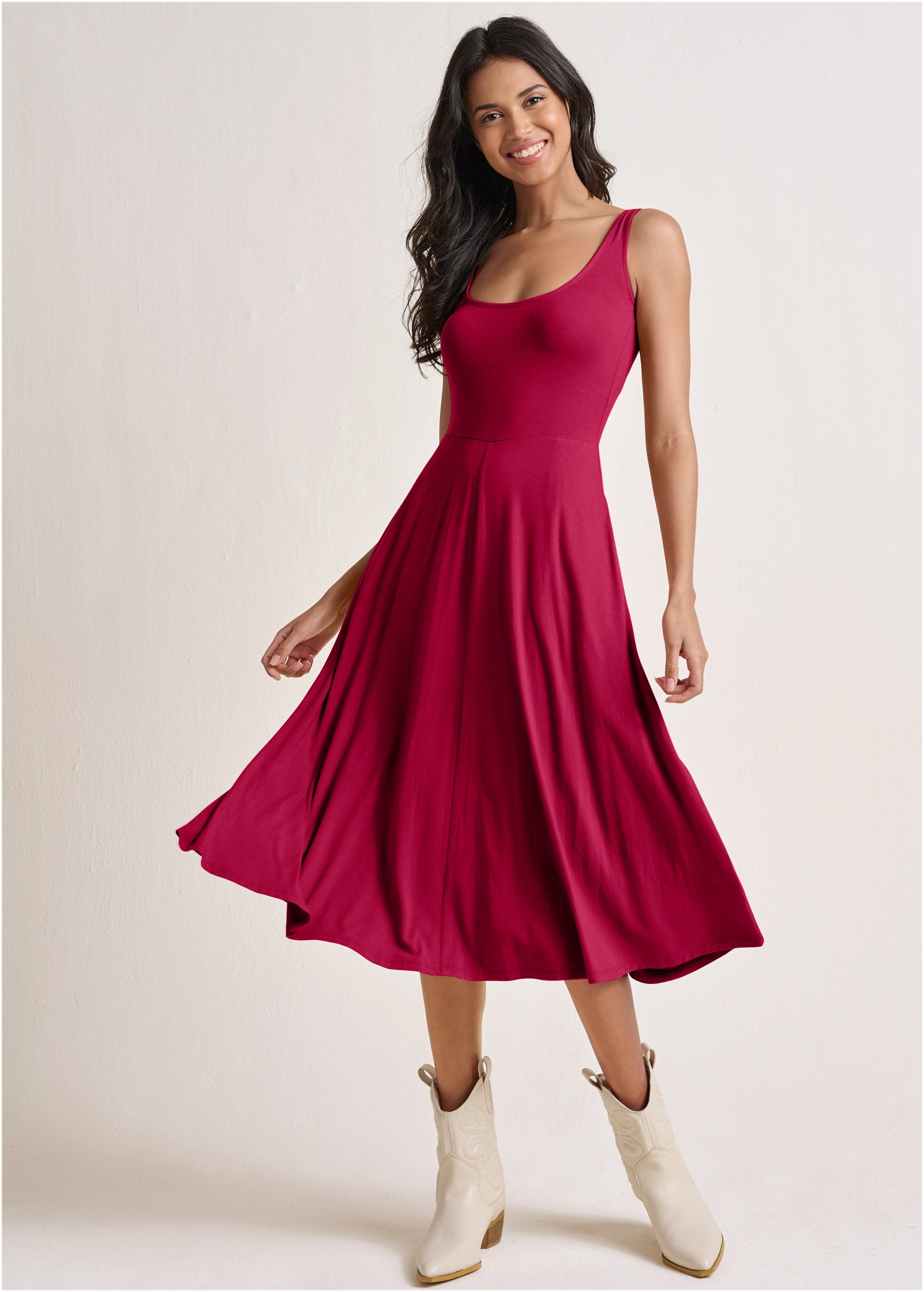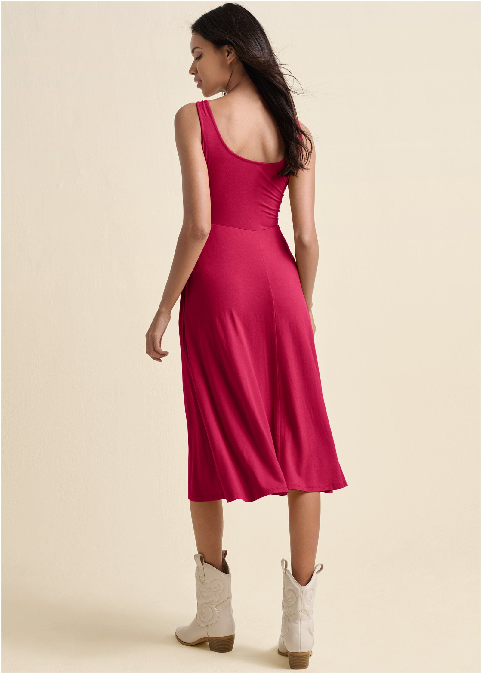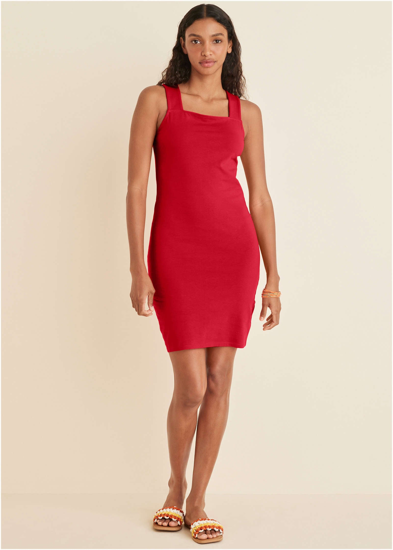 Square Neck Tank Dress - Red