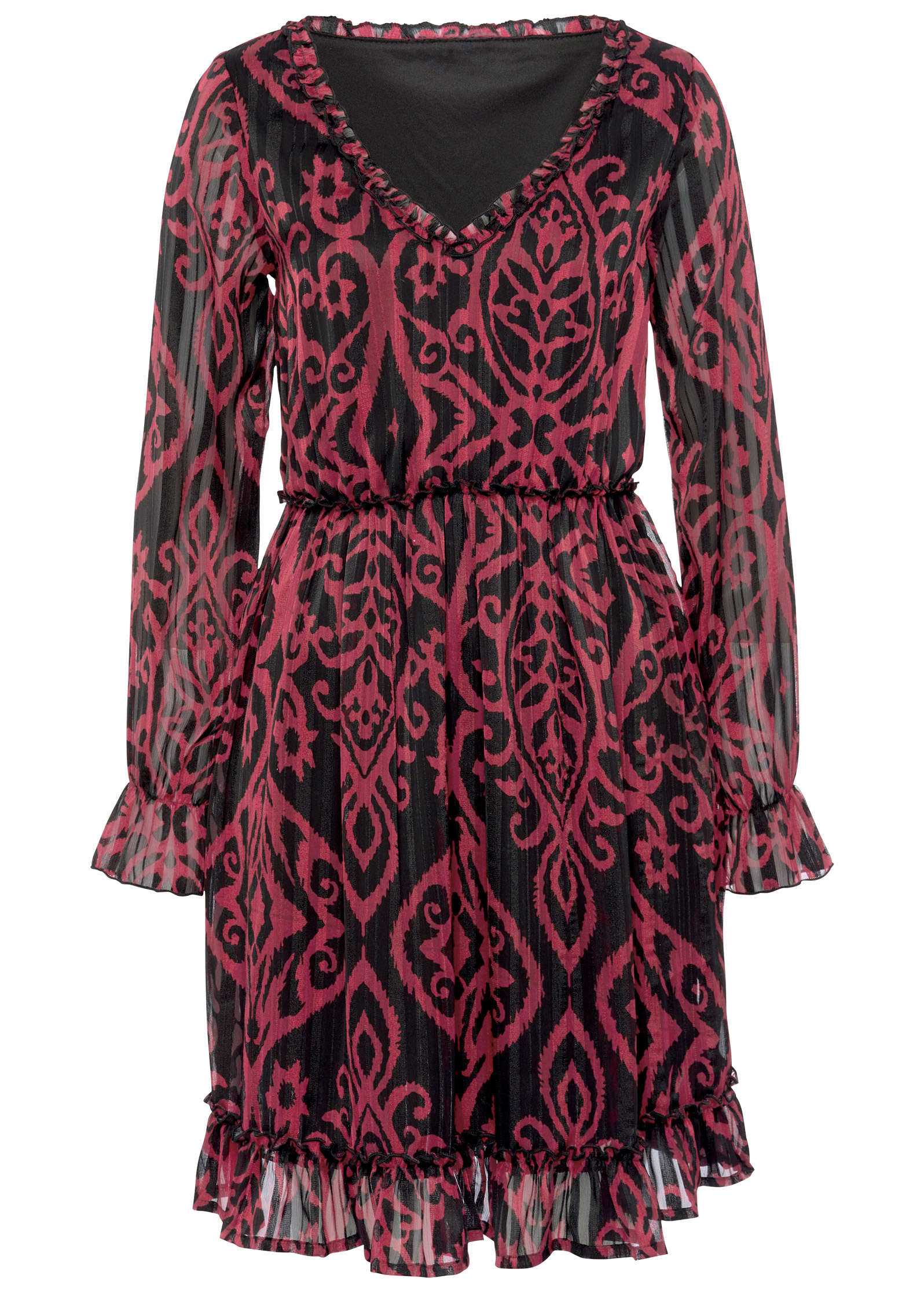 Long Sleeve V-Neck Dress - Black & Burgundy