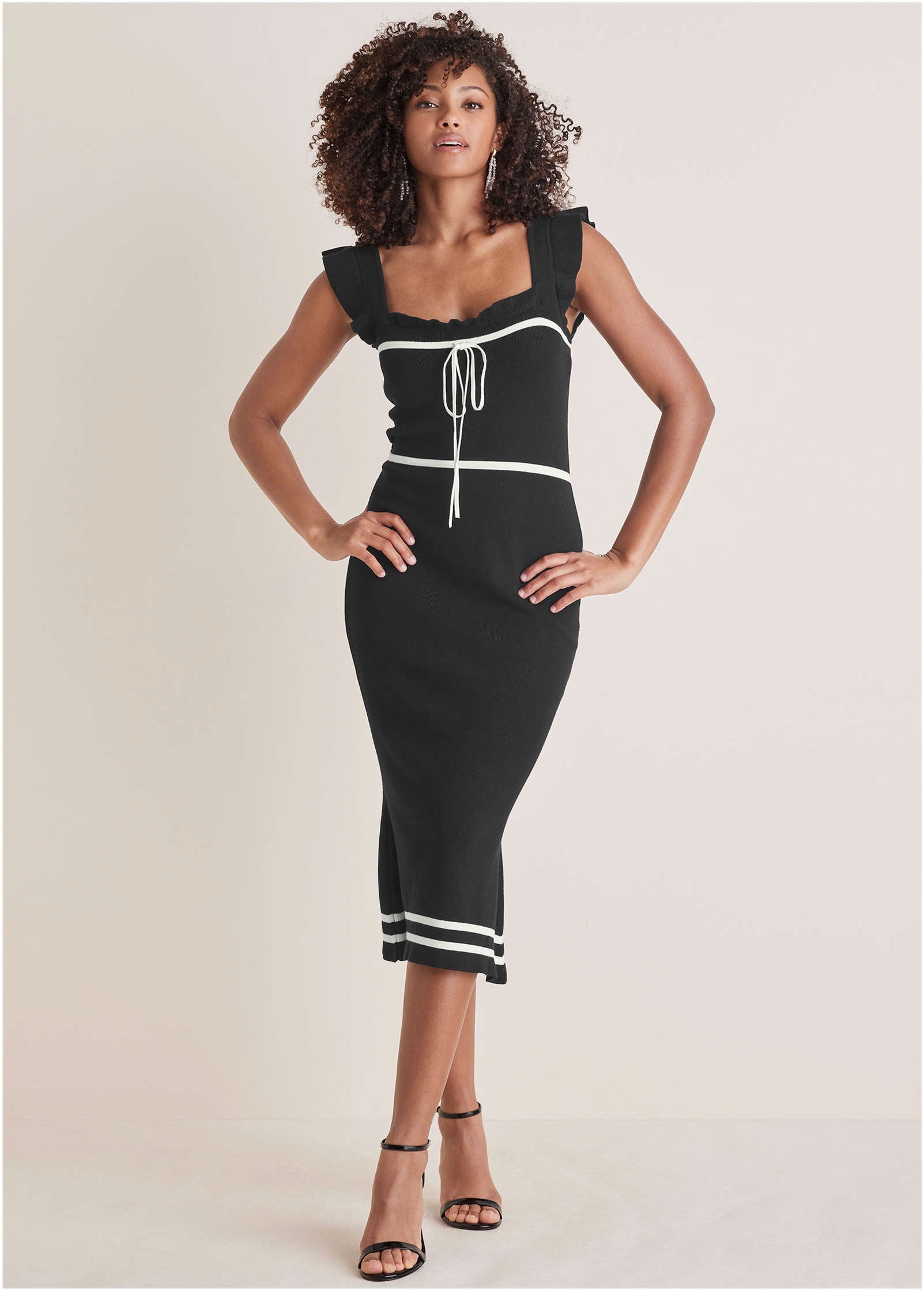 Ruffle Contrast Midi Dress - Black