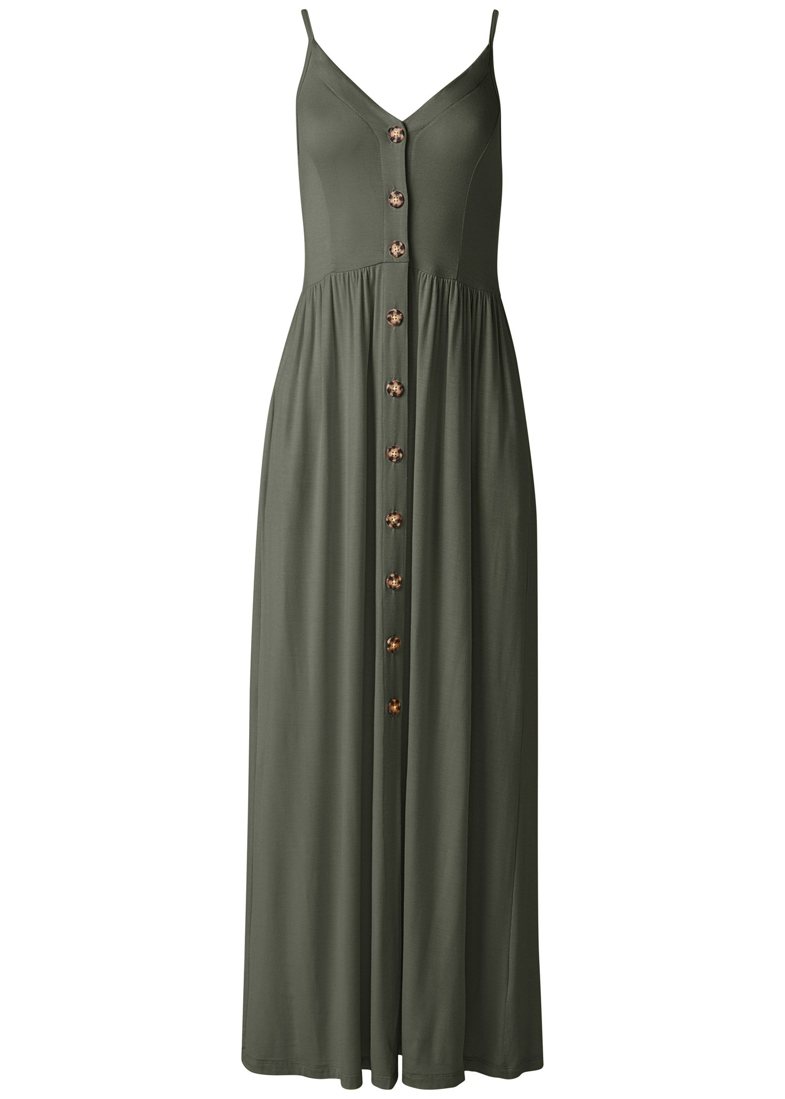 Button-Front Maxi Dress - Olive