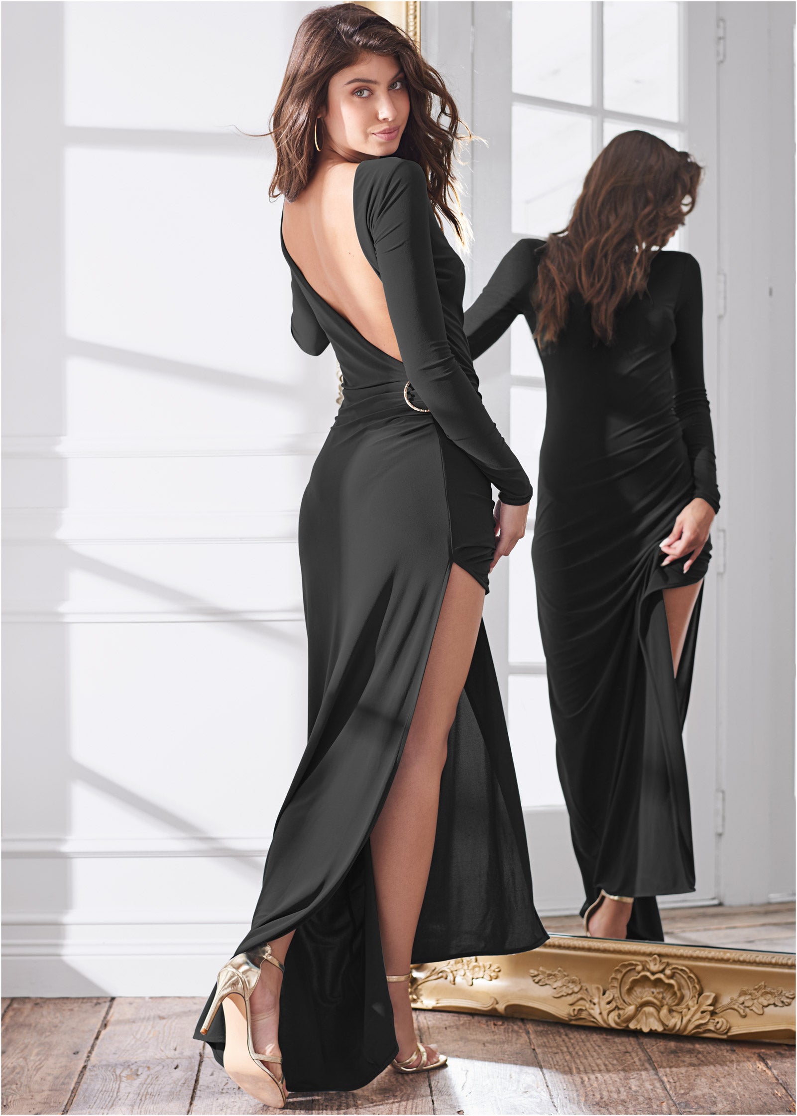 Plunging Back Long Dress - Black