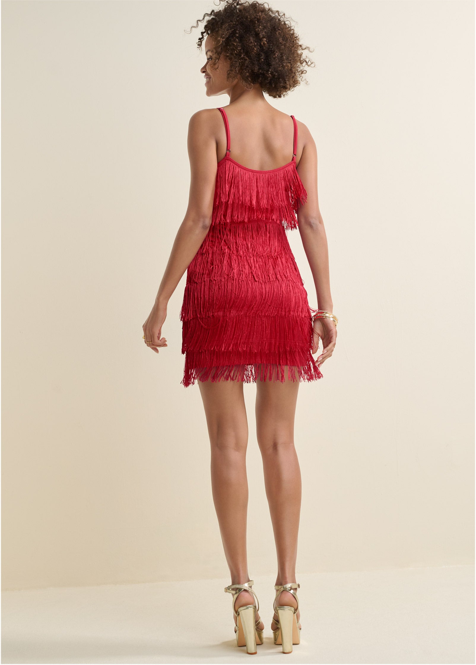 Tiered Fringe Mini Dress - Red