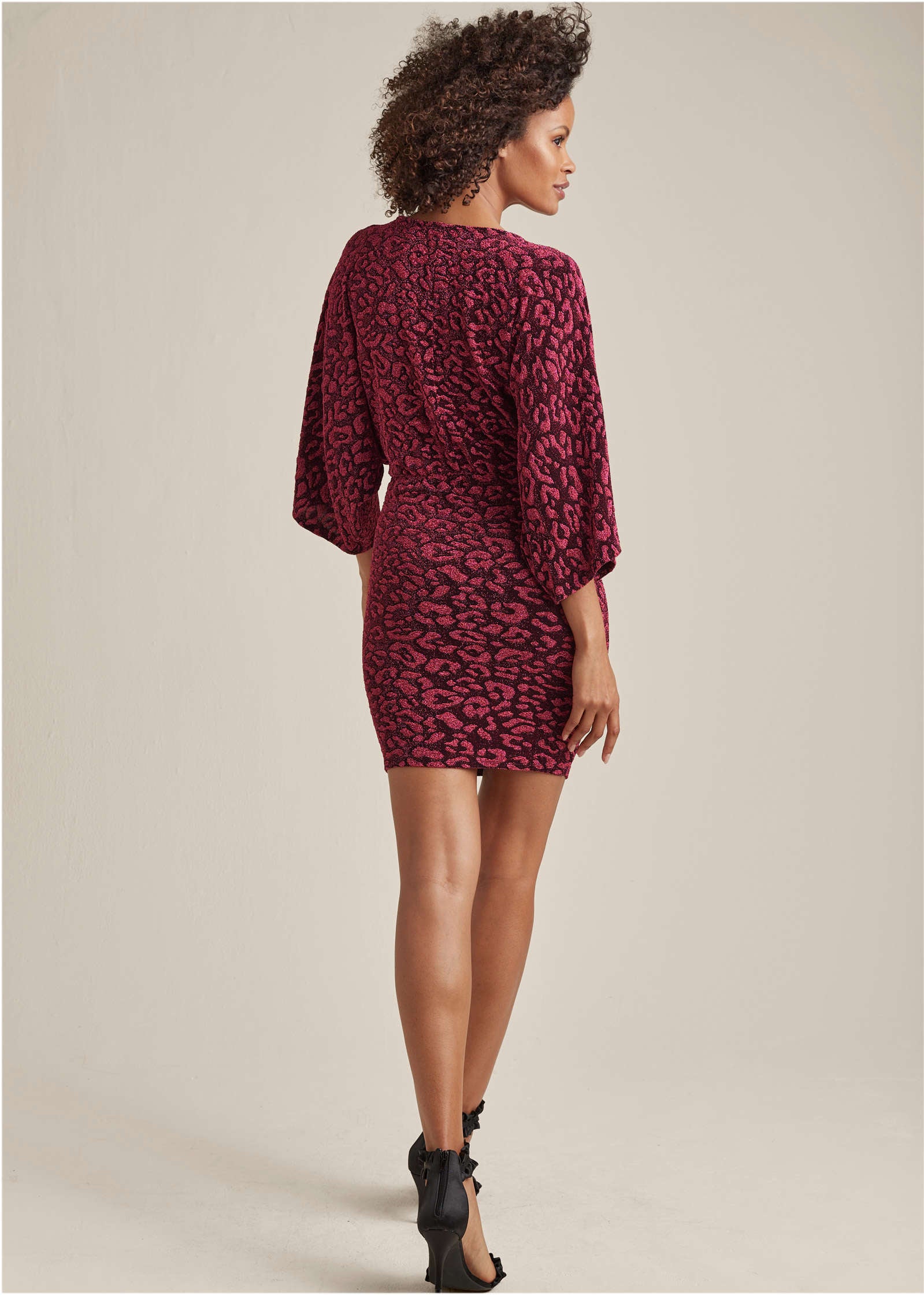 Metallic Leopard Mini Dress - Black & Pink
