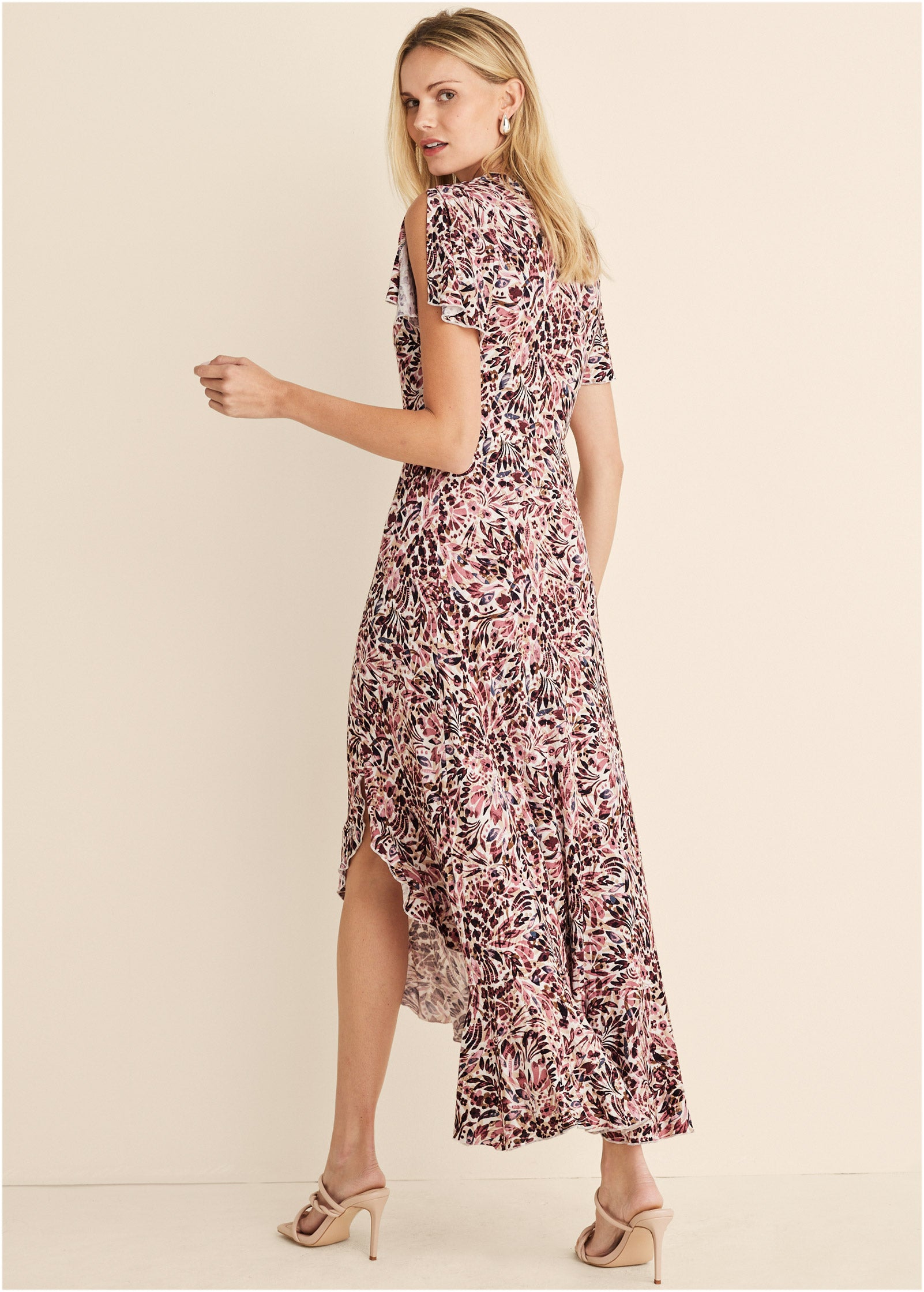 High-Low Ruffle Maxi Dress - Pink