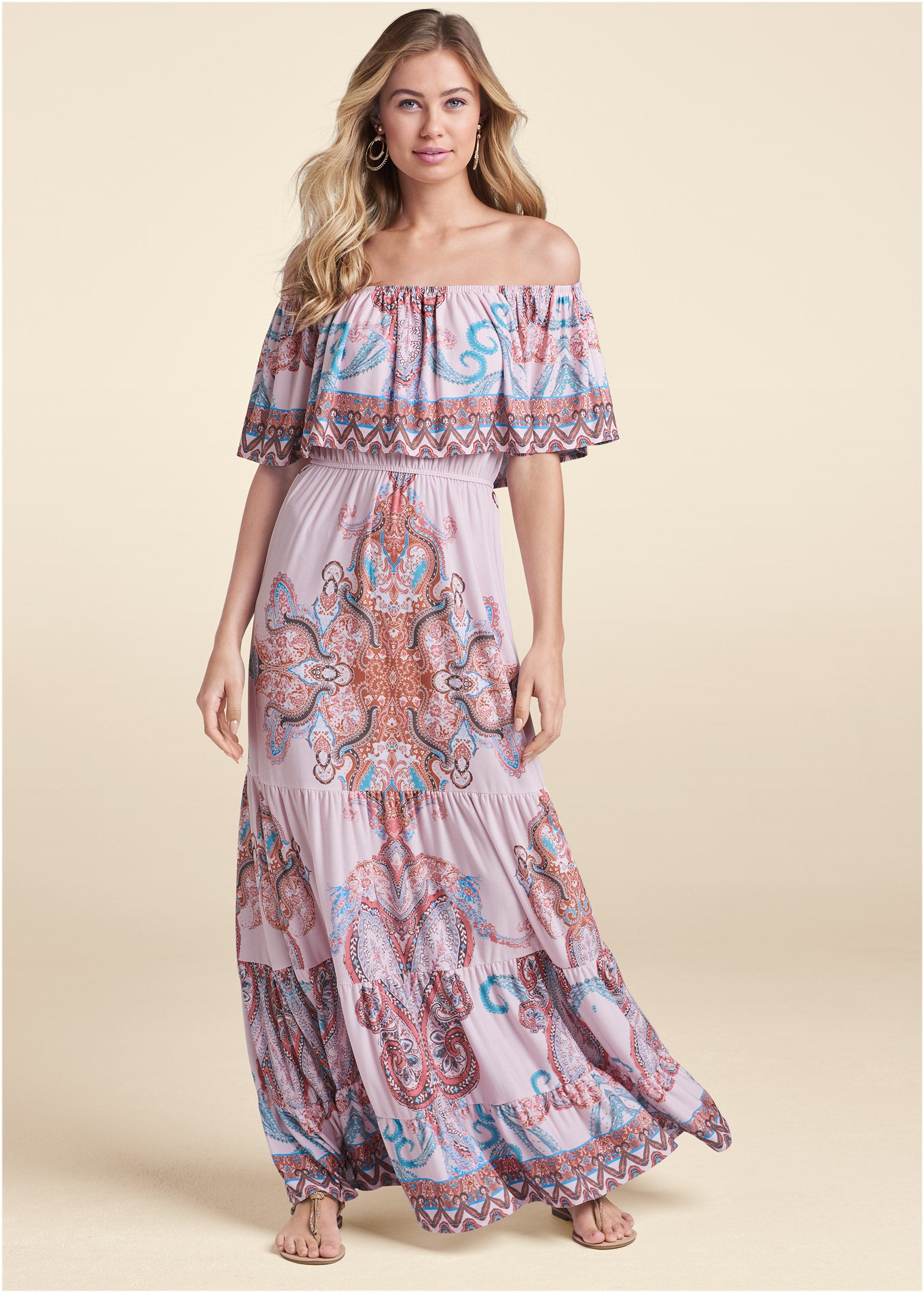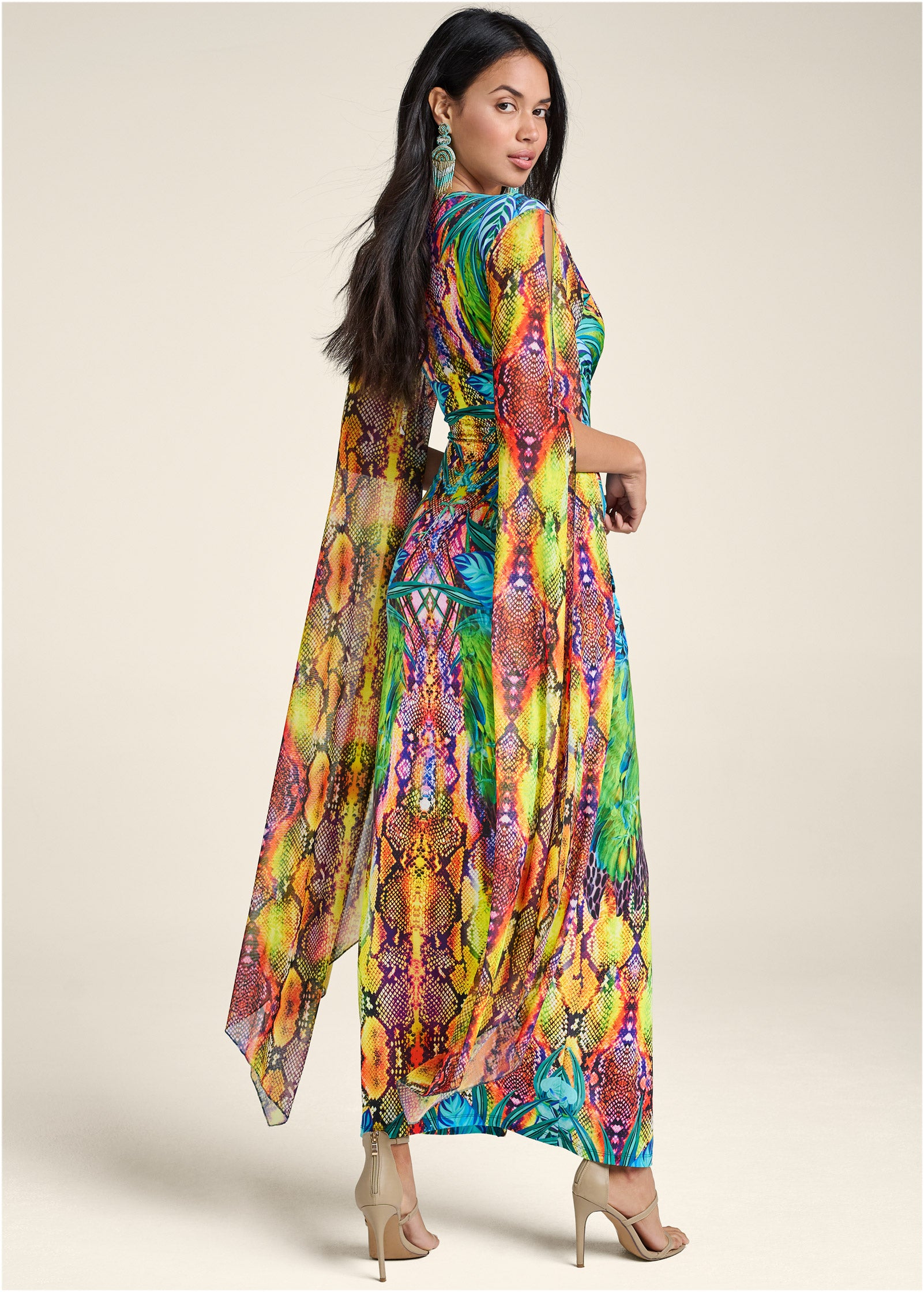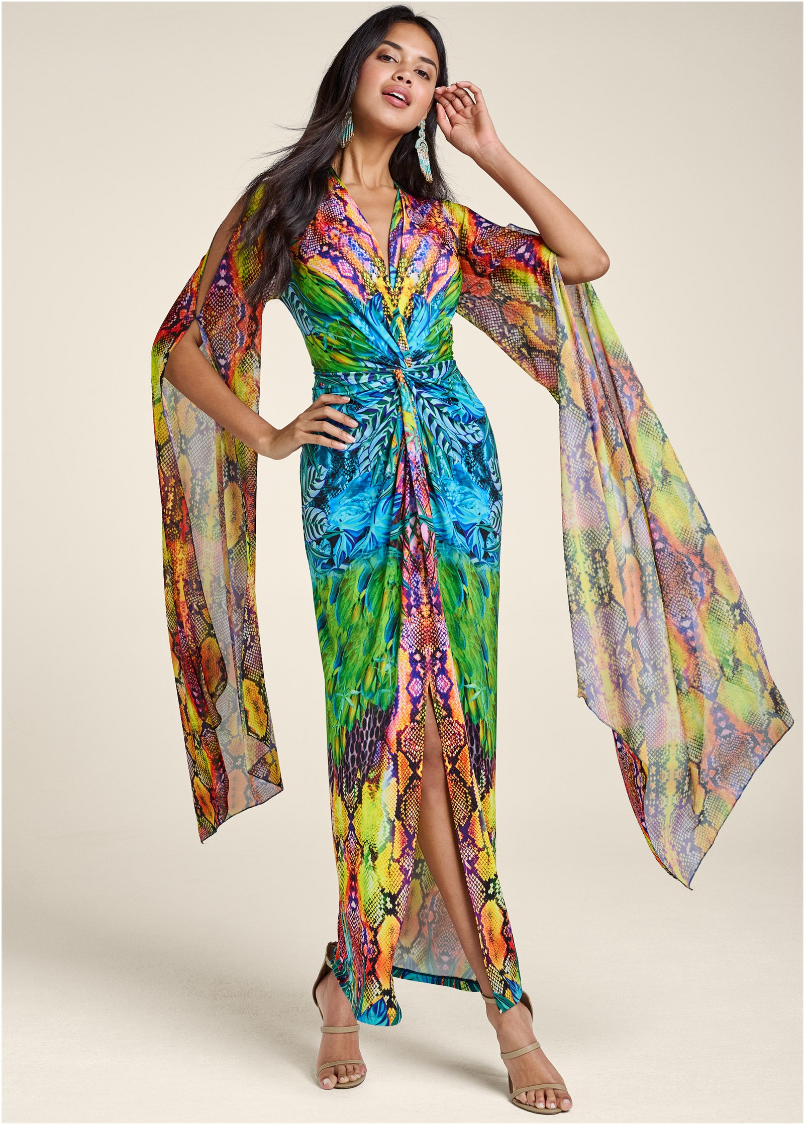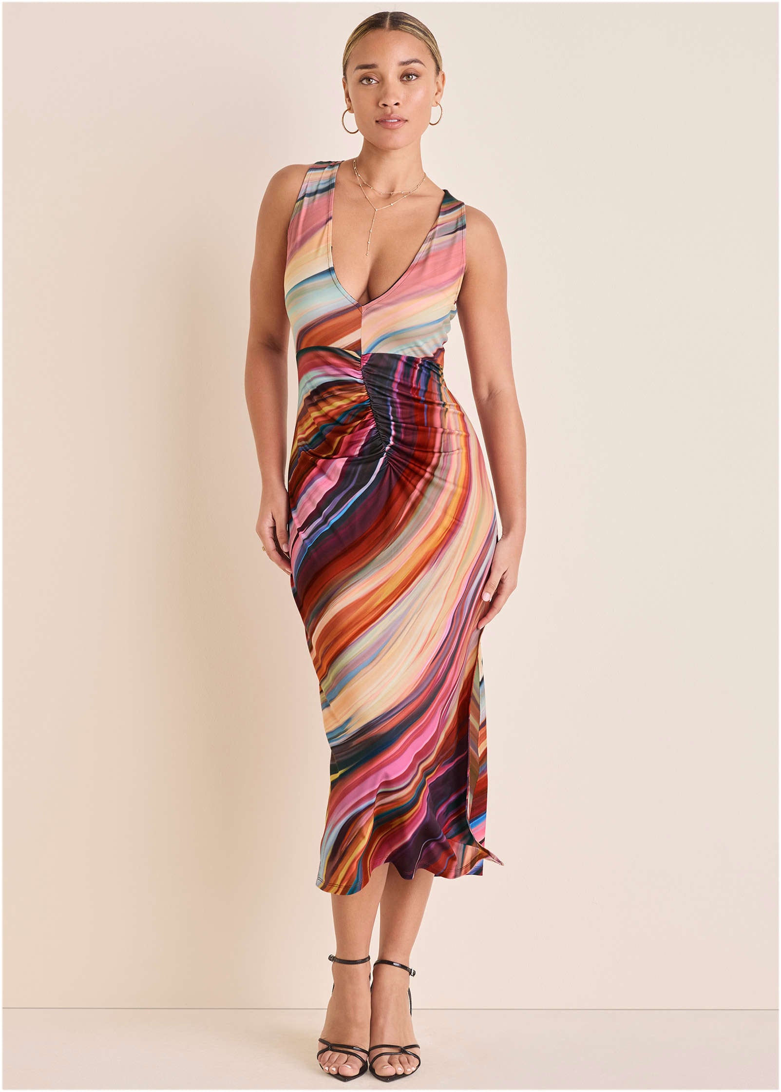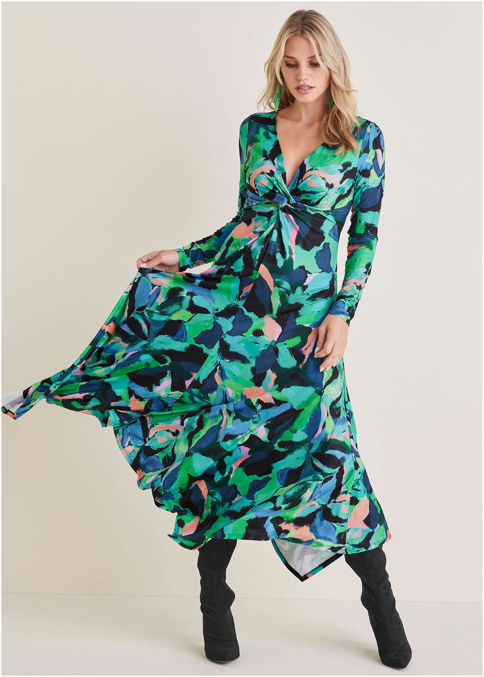 Ruched Velvet Maxi Dress - Electric Bouquet
