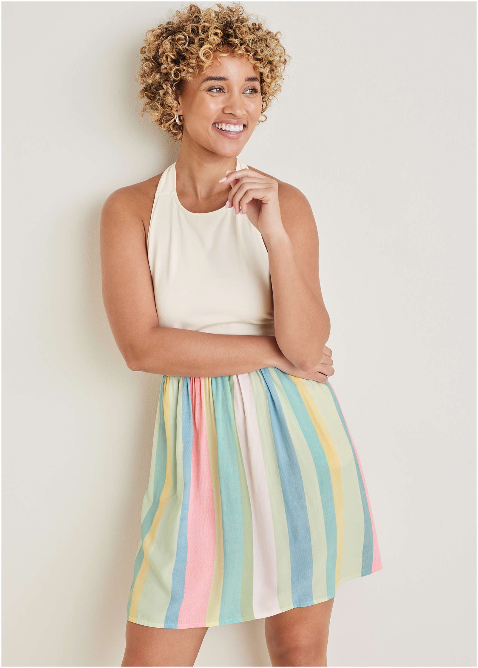 Stripe Halter Mini Dress - Boardwalk Stripe
