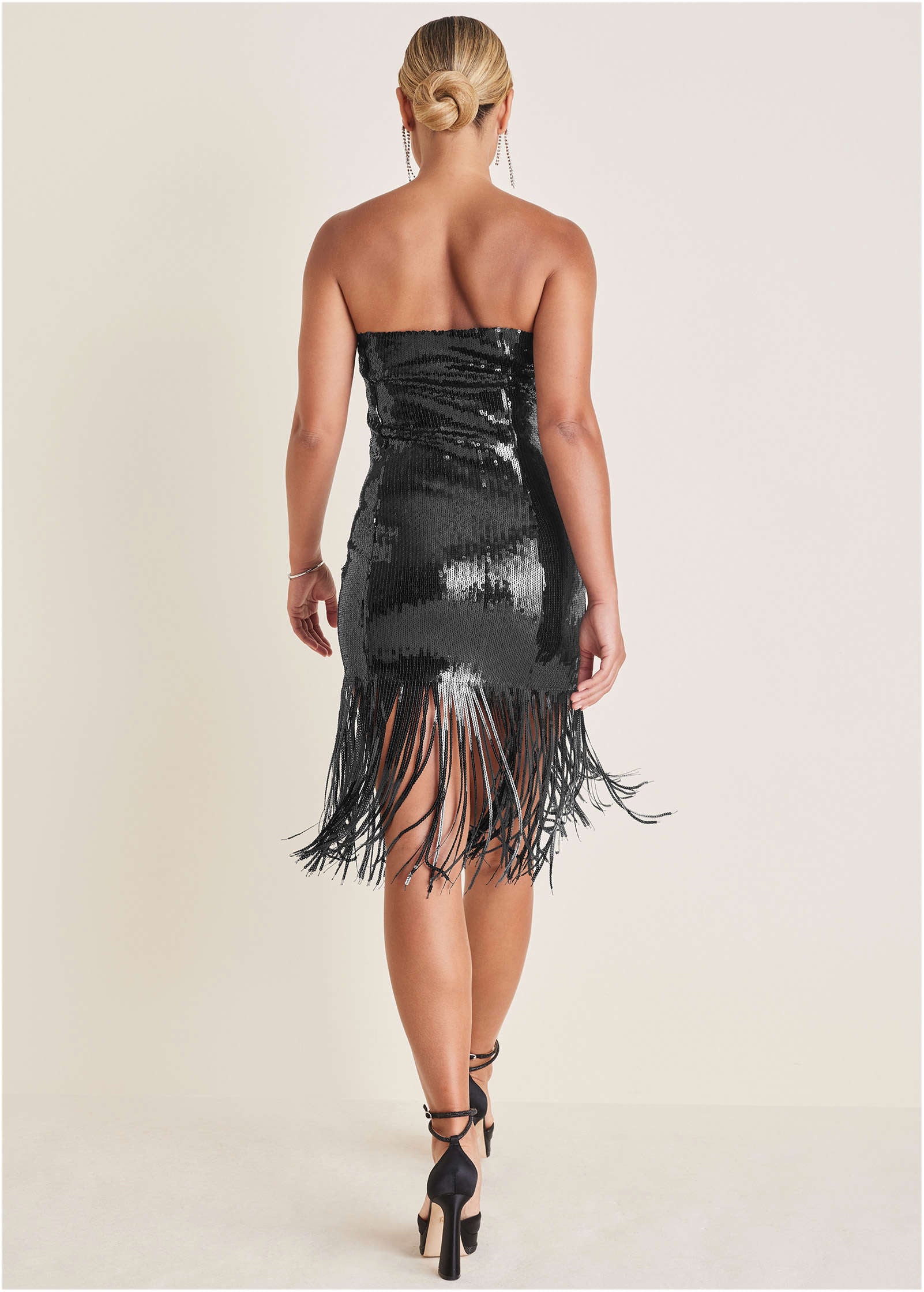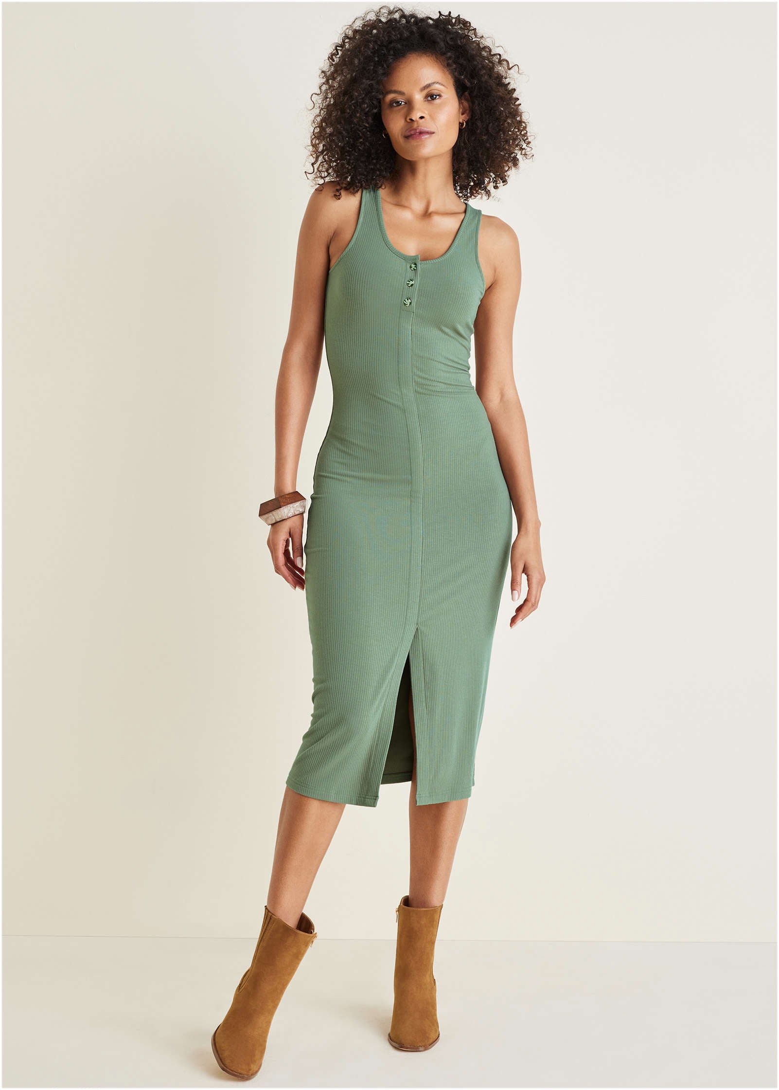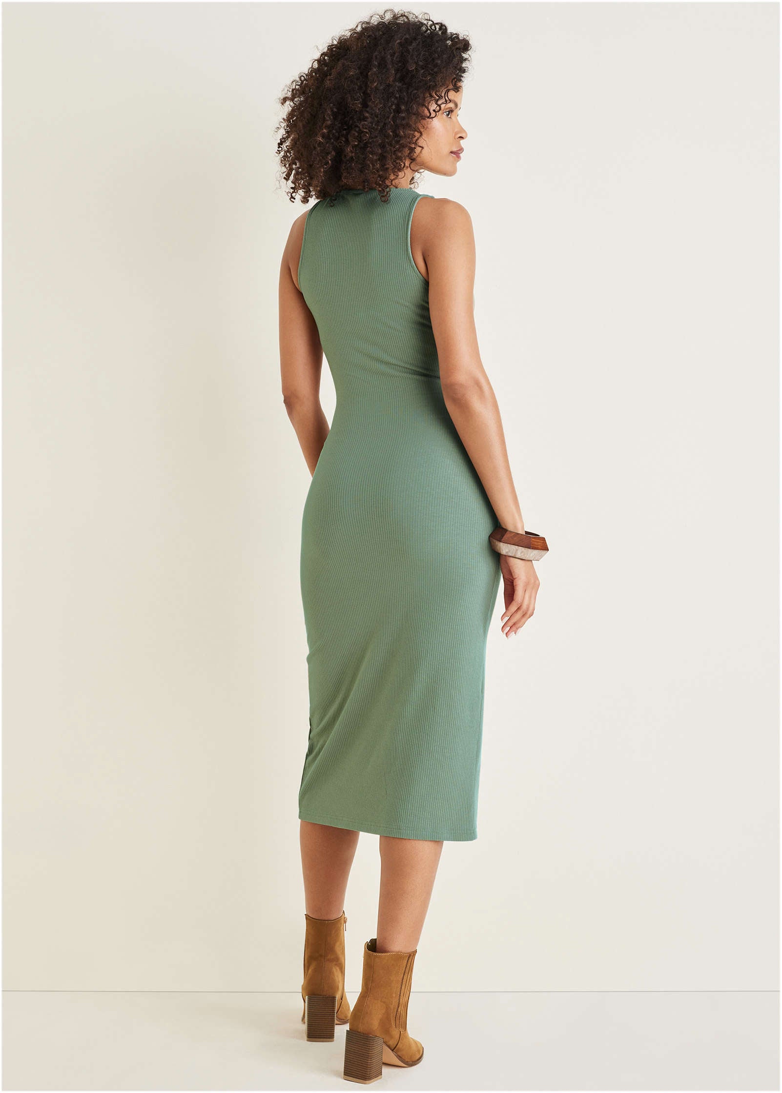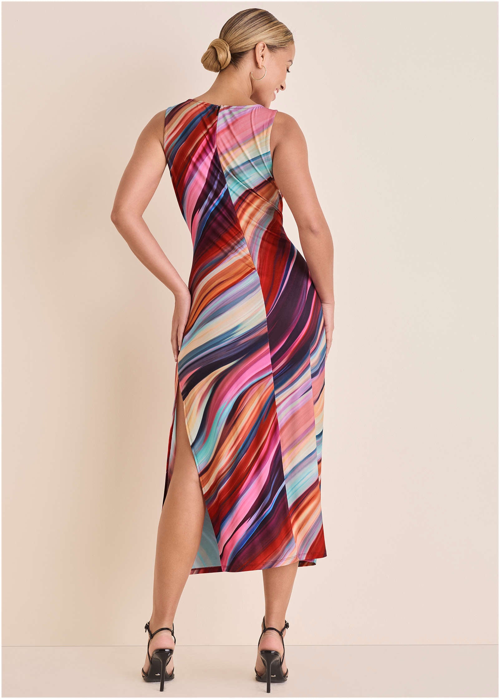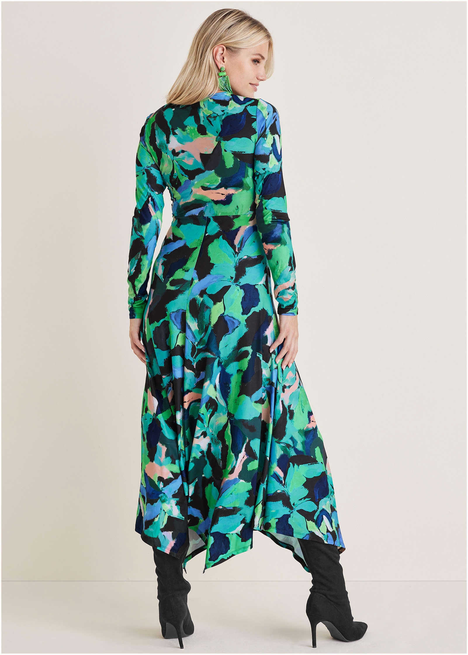 Ruffle Detail Midi Dress - Ombre Block Leaves