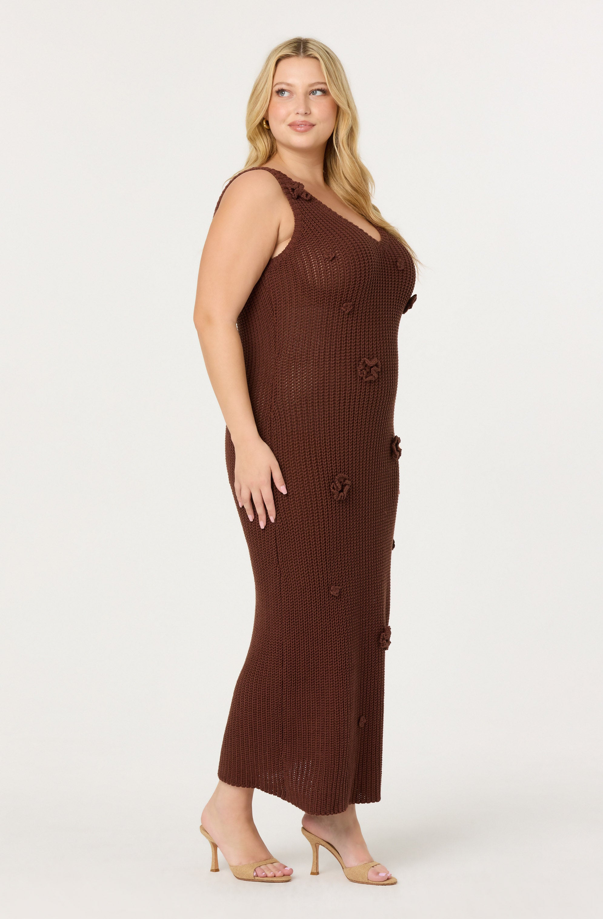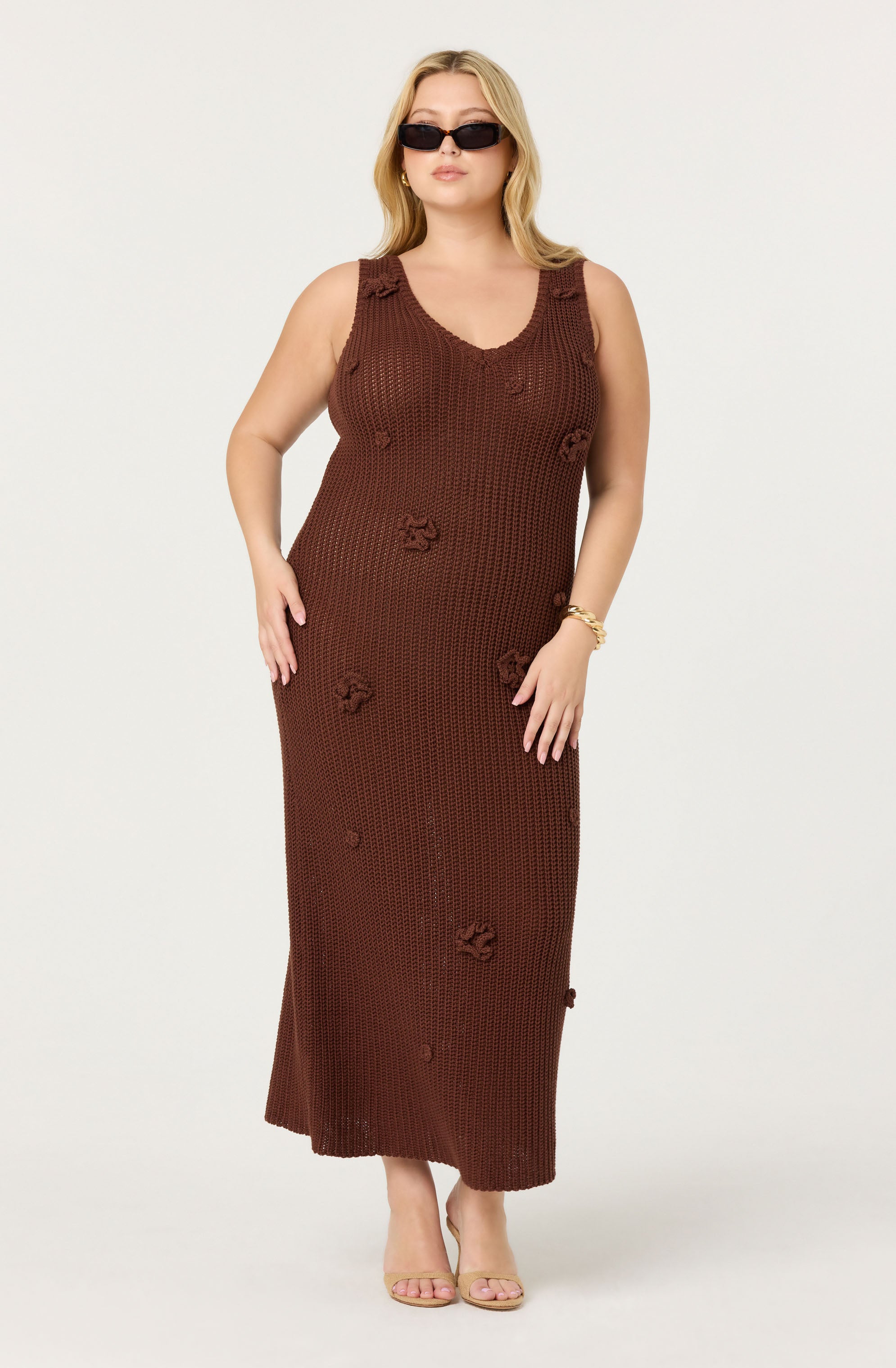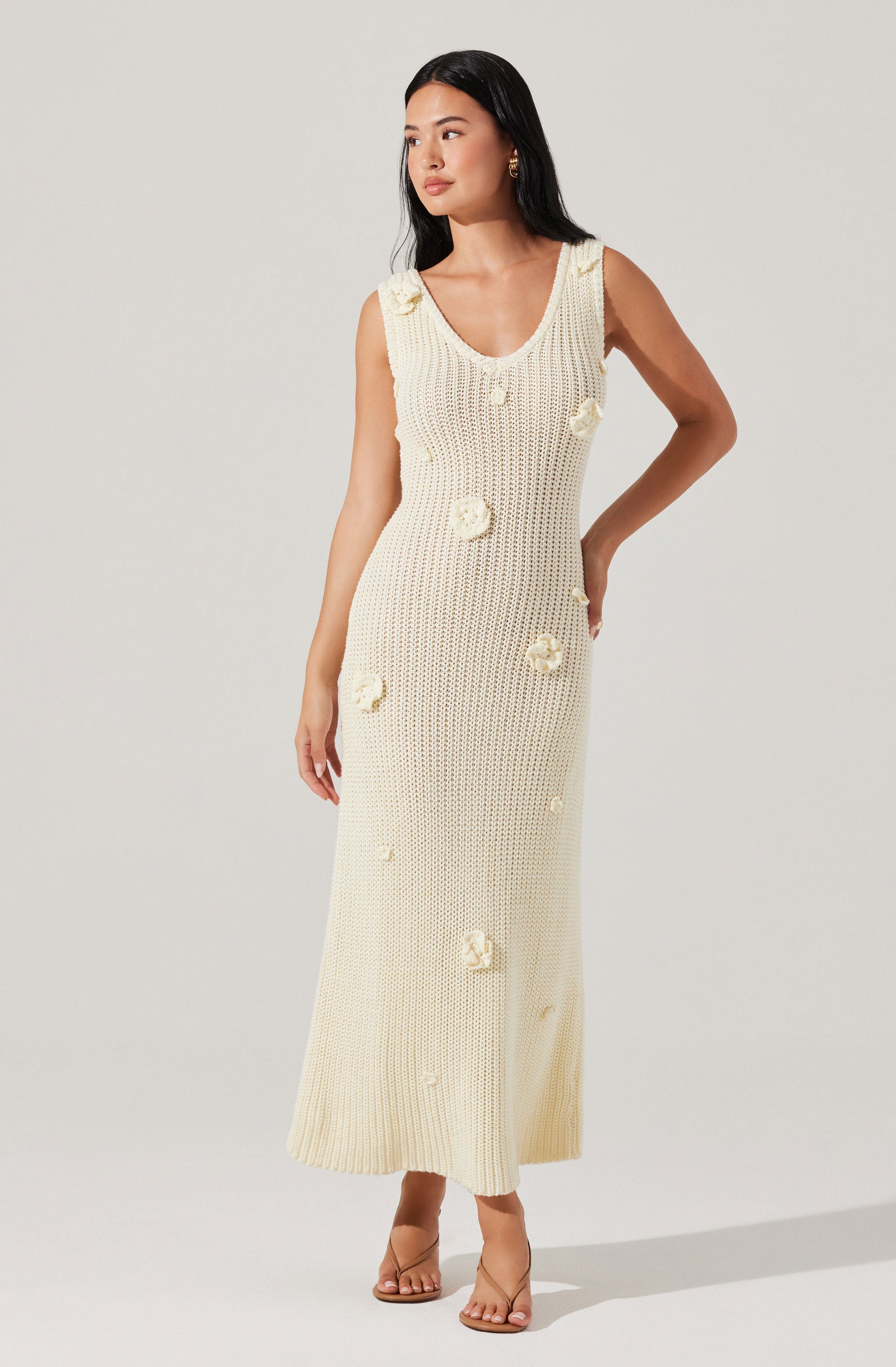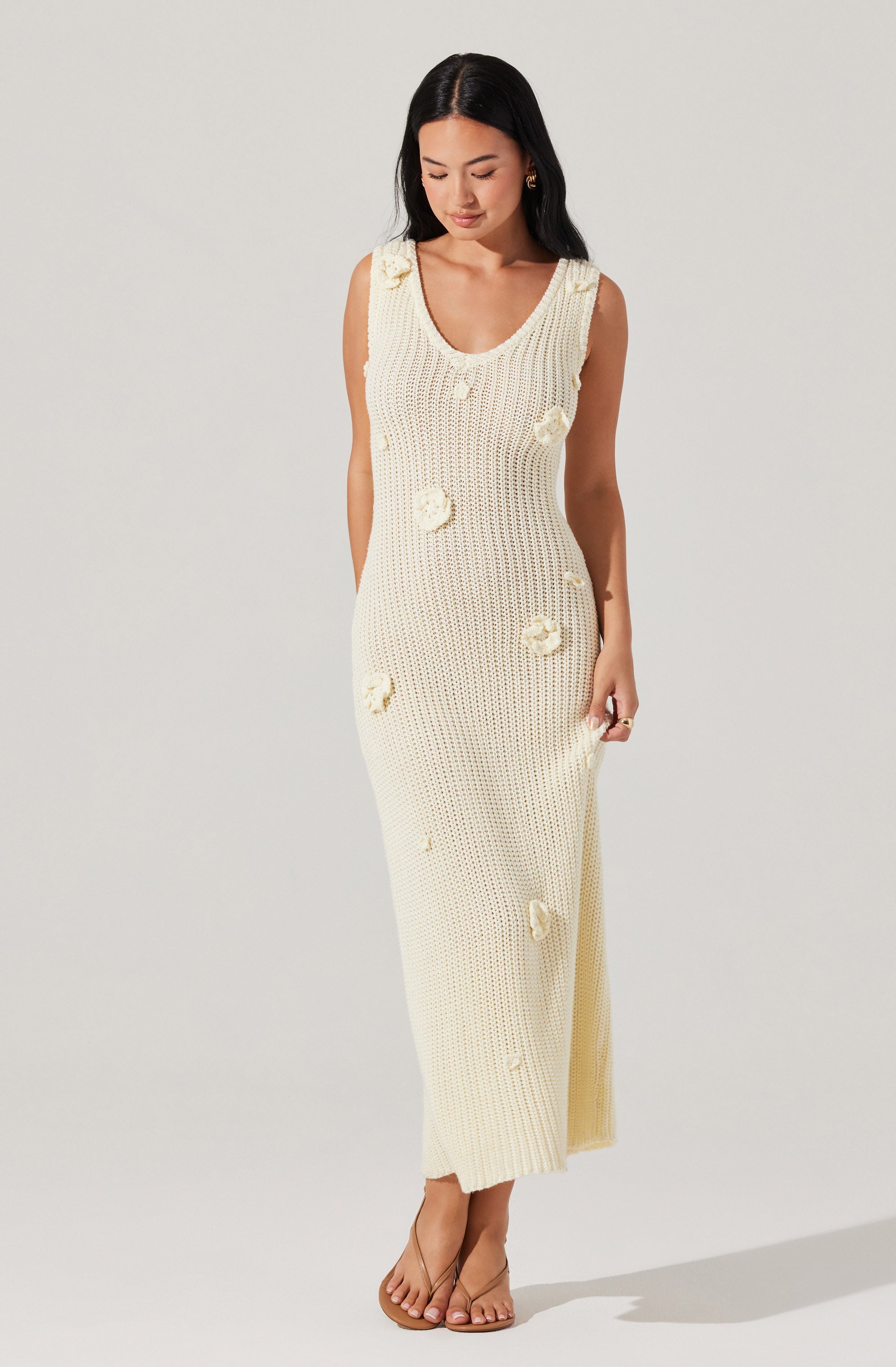 Crochet maxi dress adorned with crochet flowers