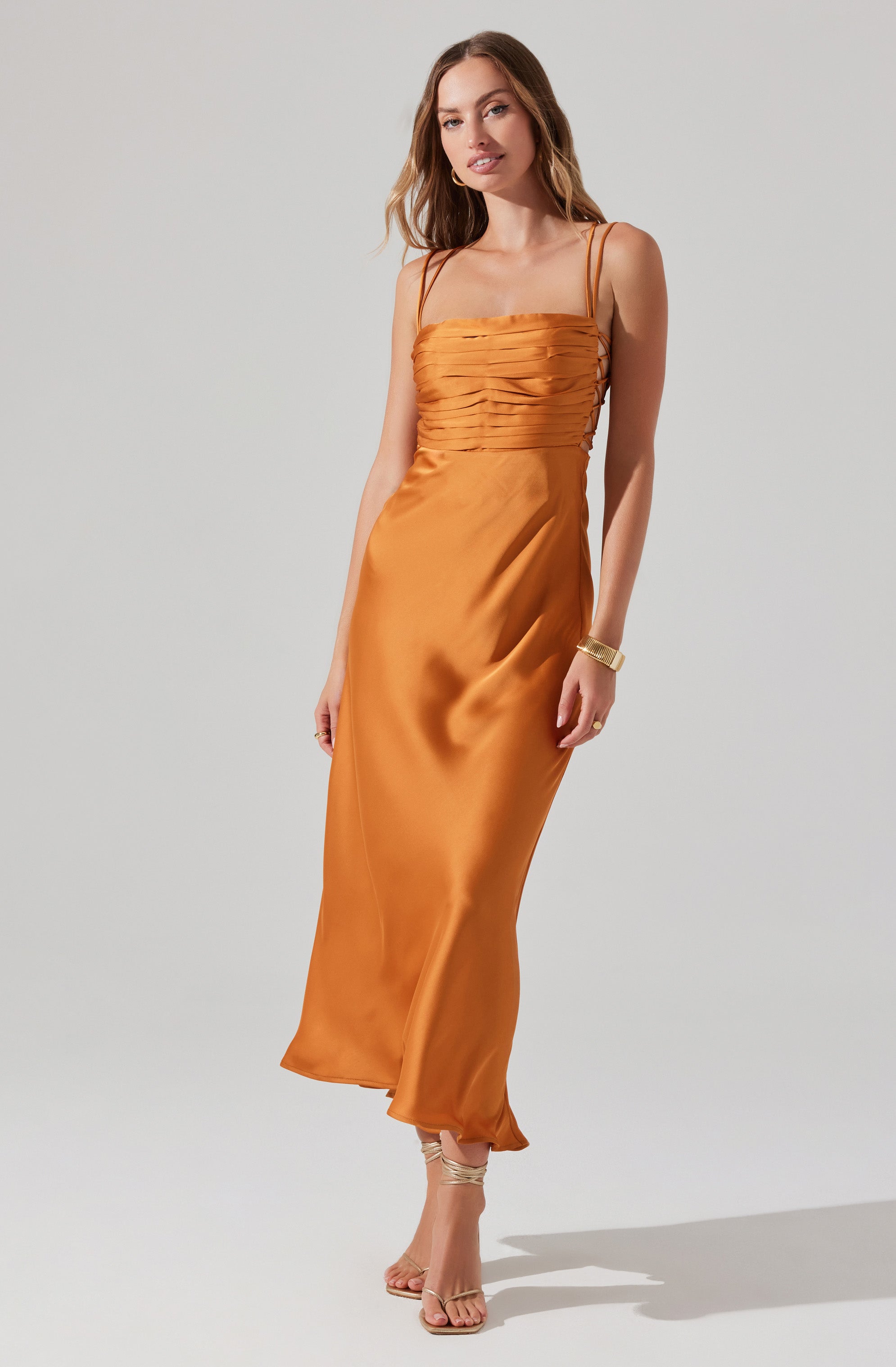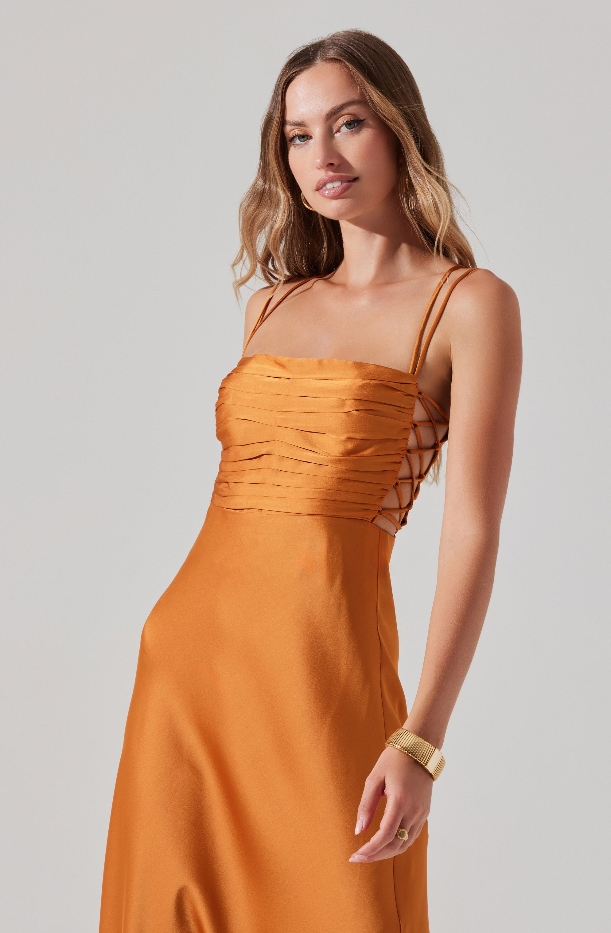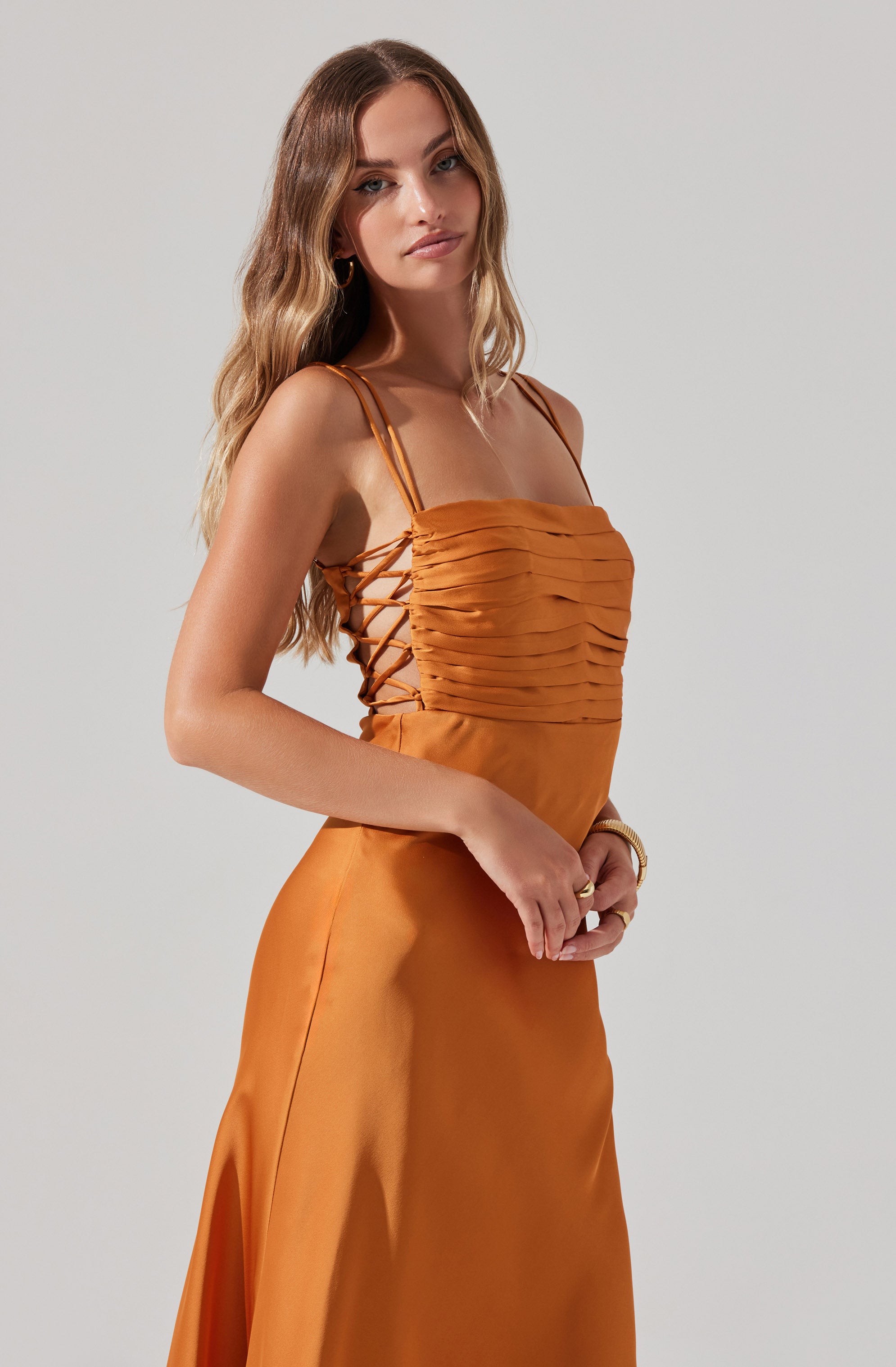 Pleated bust with side lace-up tie detail