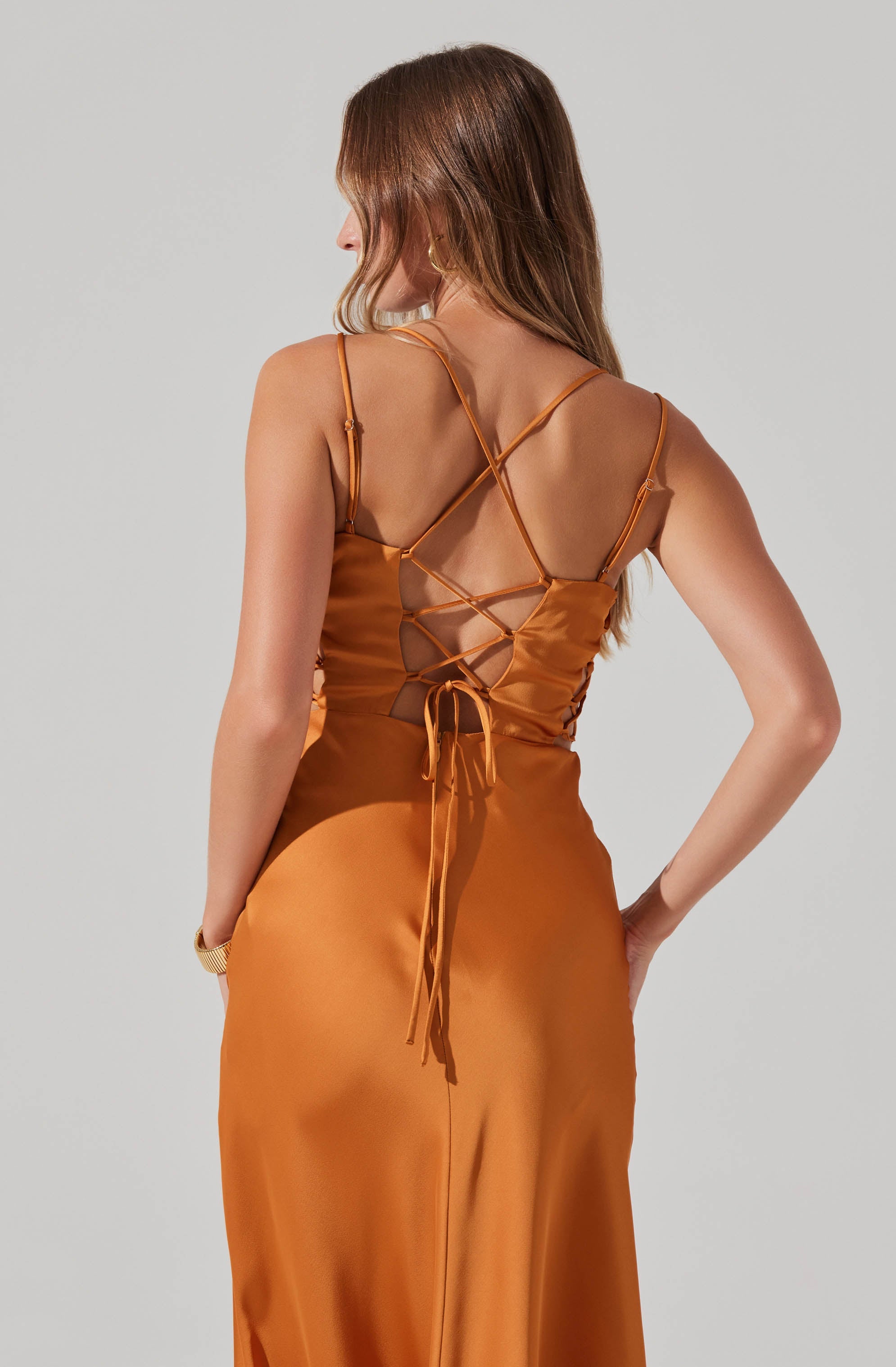Back tie lace-up with concealed zipper closure