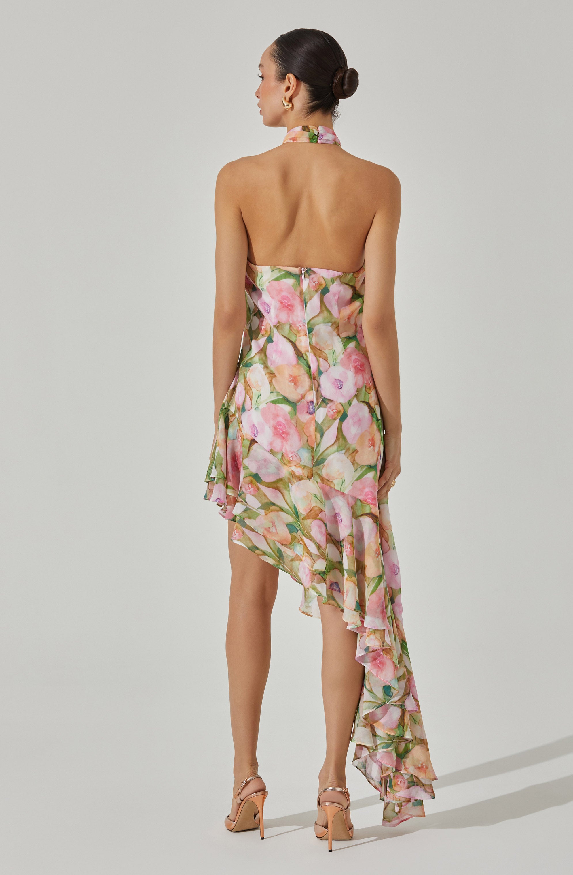 Asymmetric Floral Halter Midi Dress