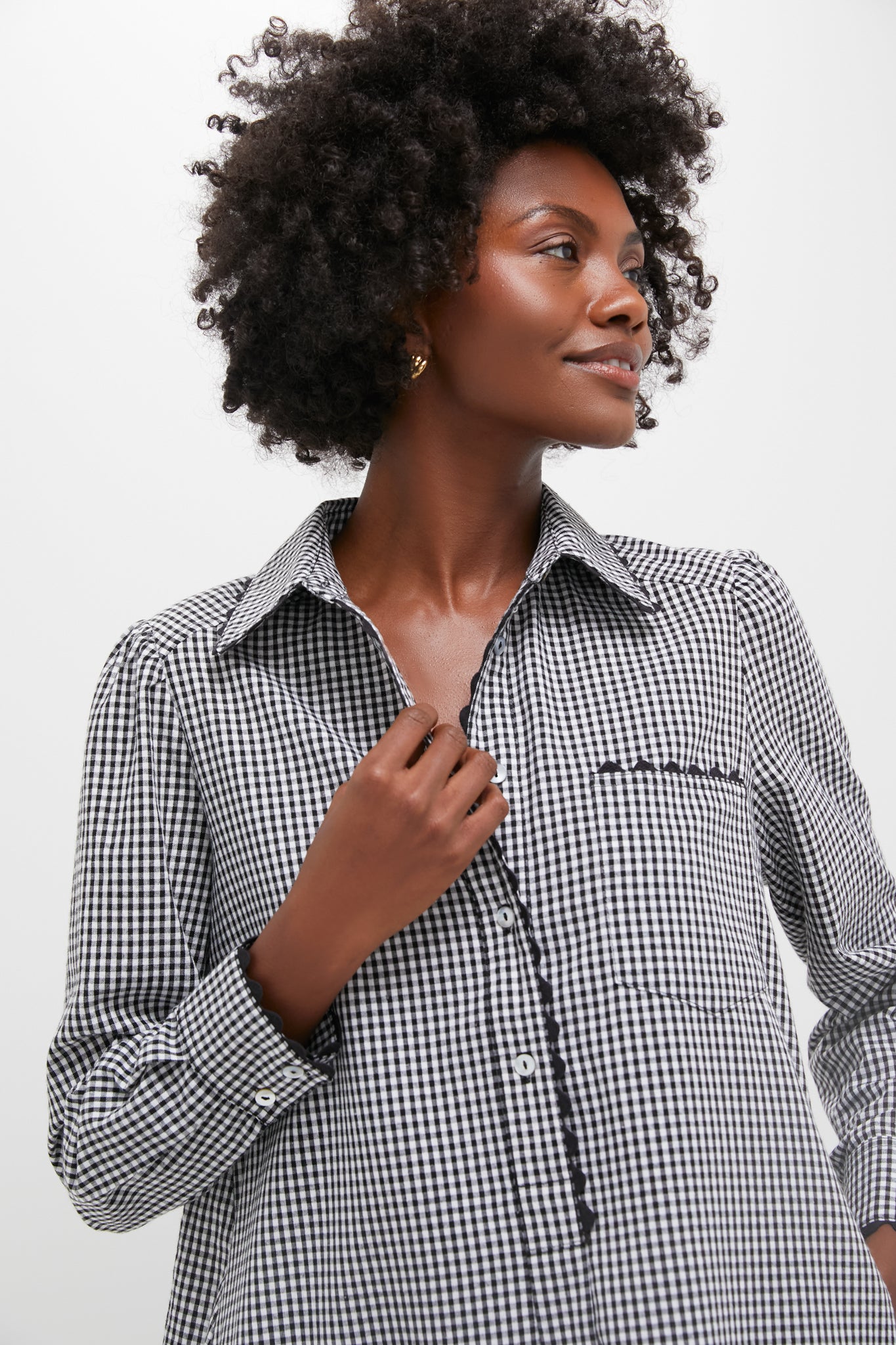 The Black Gingham Callahan Shirt Dress perfectly merges classic and trendy with its button front half placket and flirty flutter hemline that encapsulates unfussy femininity. With ric rac detailing on the collar. placket. cuffs. and hemline. this dress has the little something special you're looking for. We are pairing this fun piece with flats. sneakers. or sandals. and your favorite clutch or tote!