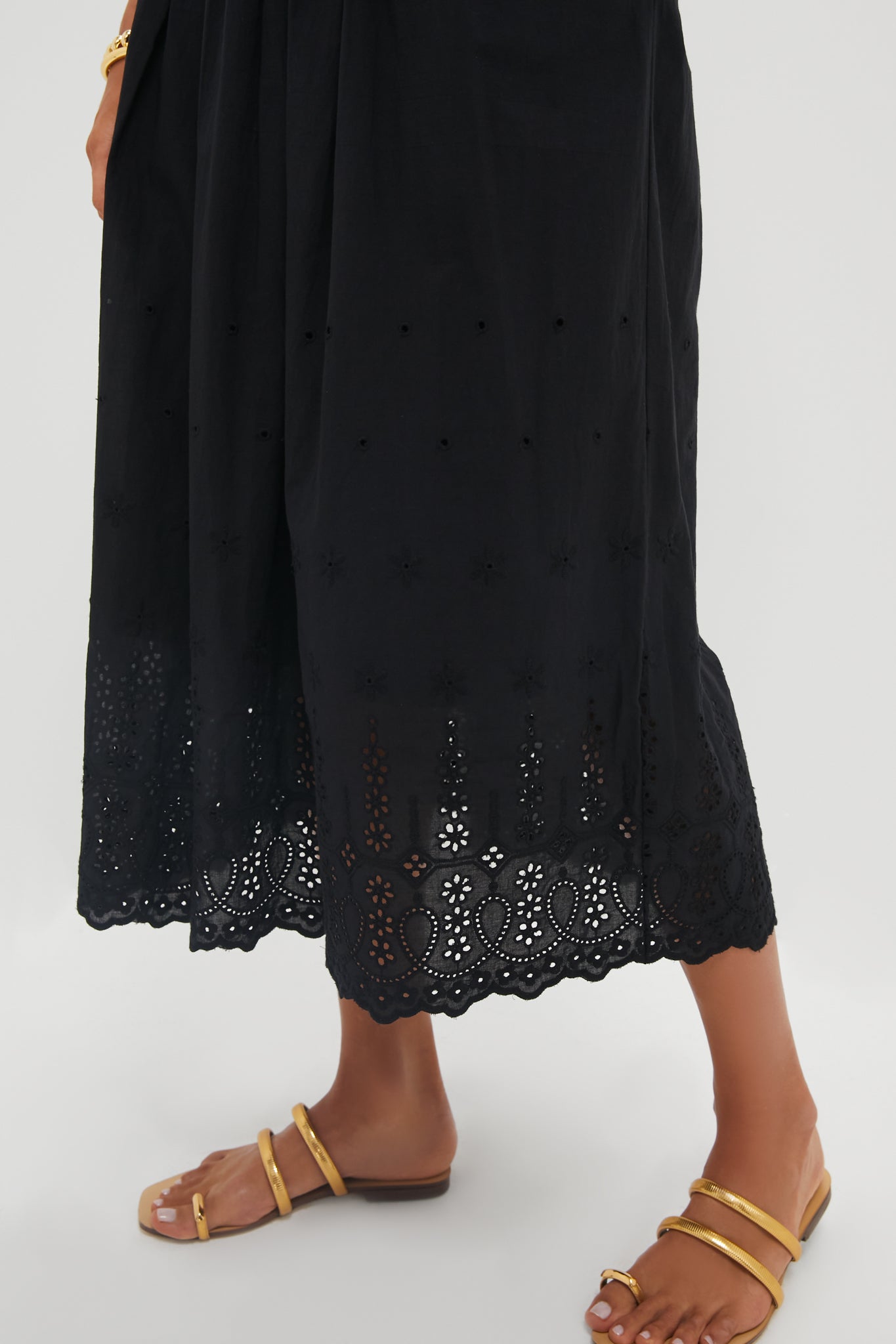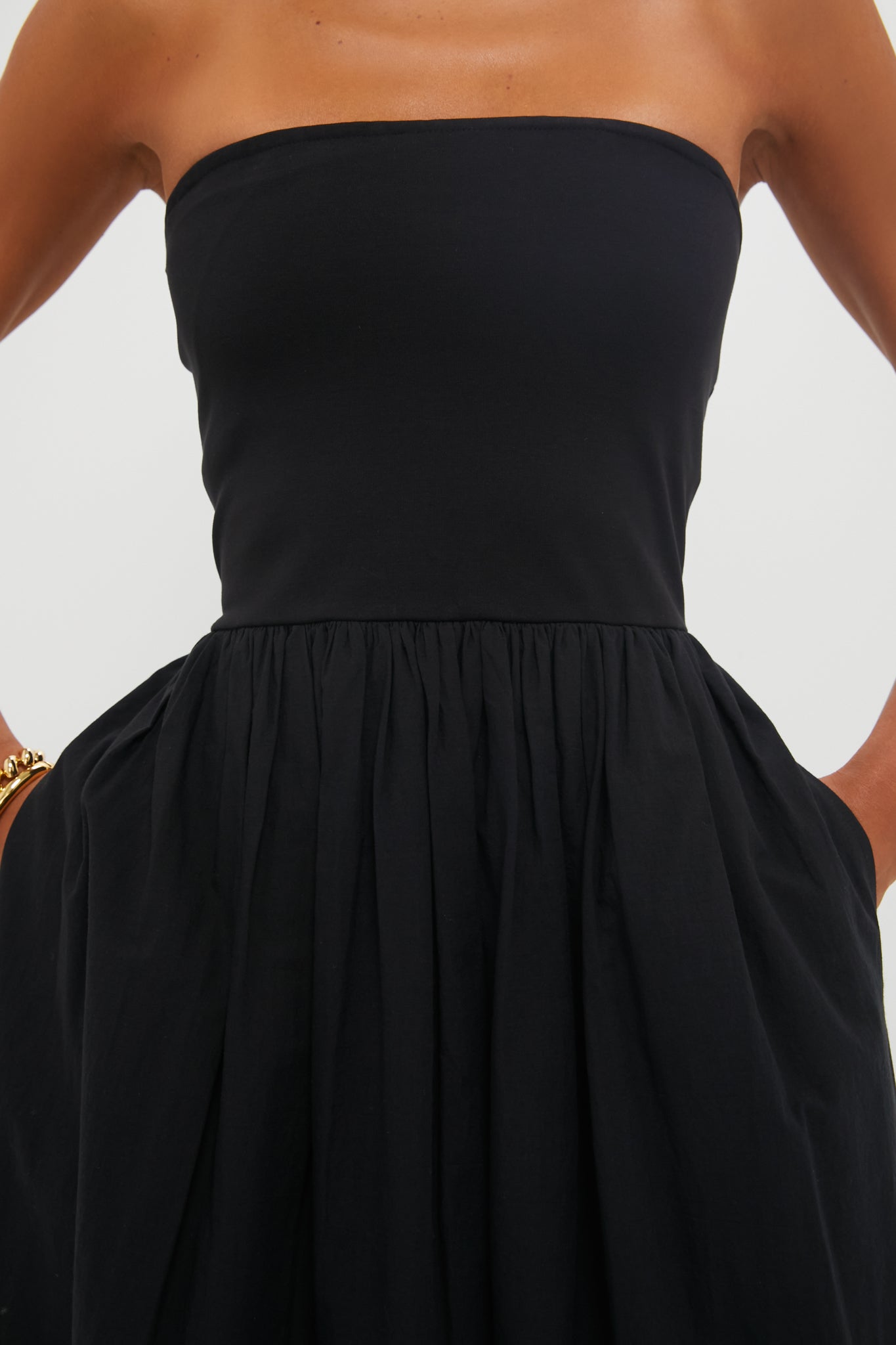 The Black Harper Dress is an effortless. elegant style perfect for summer weddings and al fresco dinners. With a stretch bodice. strapless neckline. and eyelet detailing along the hem. this easy throw-and-go style can be paired with heels or sandals for endless occasions!