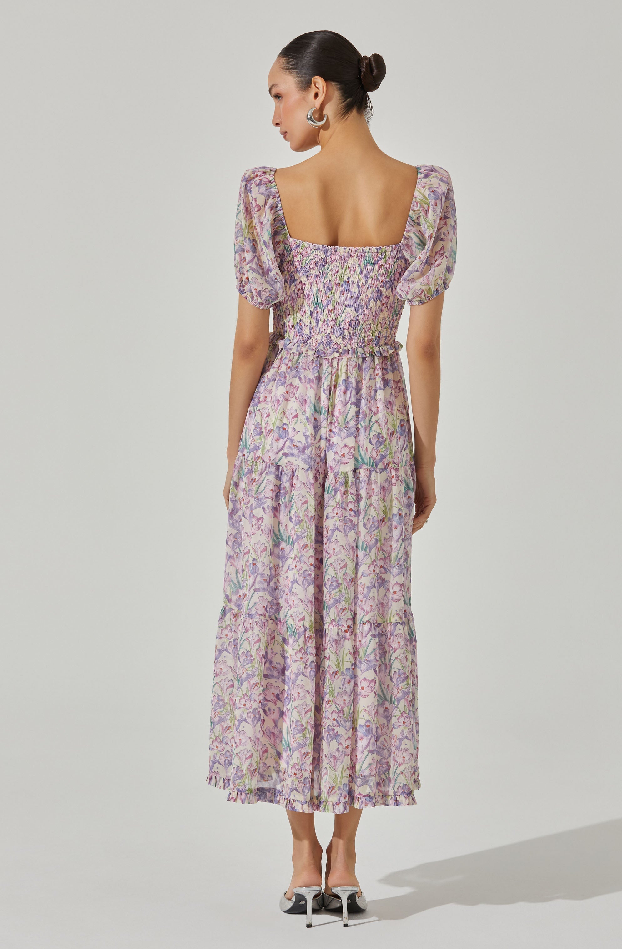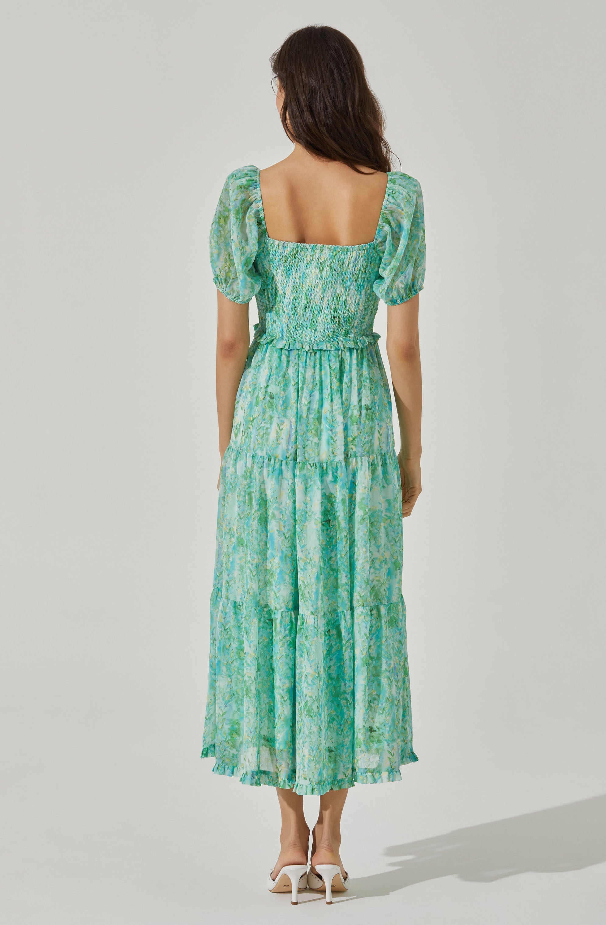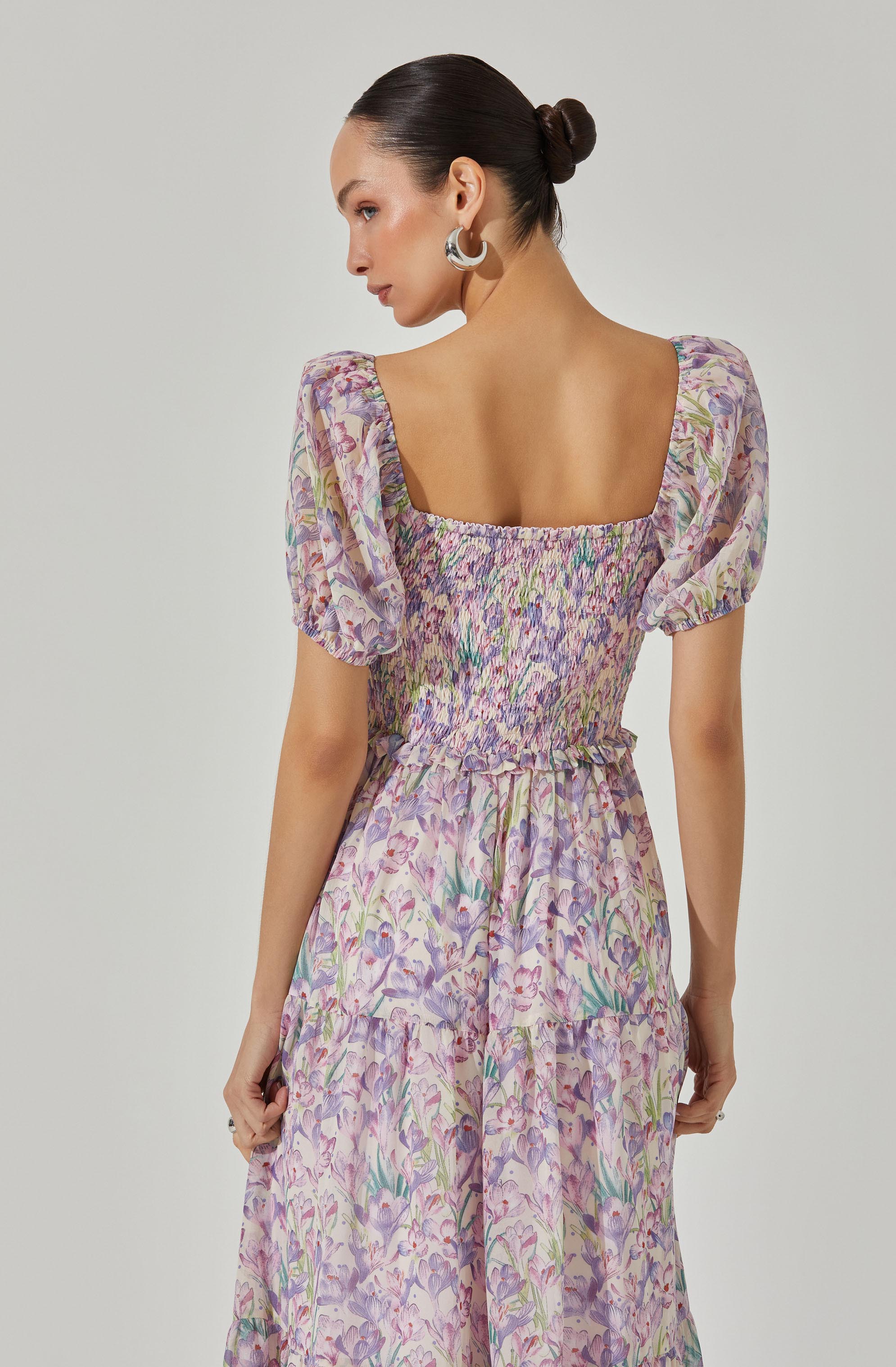 Puff sleeves. smocked back. midi length