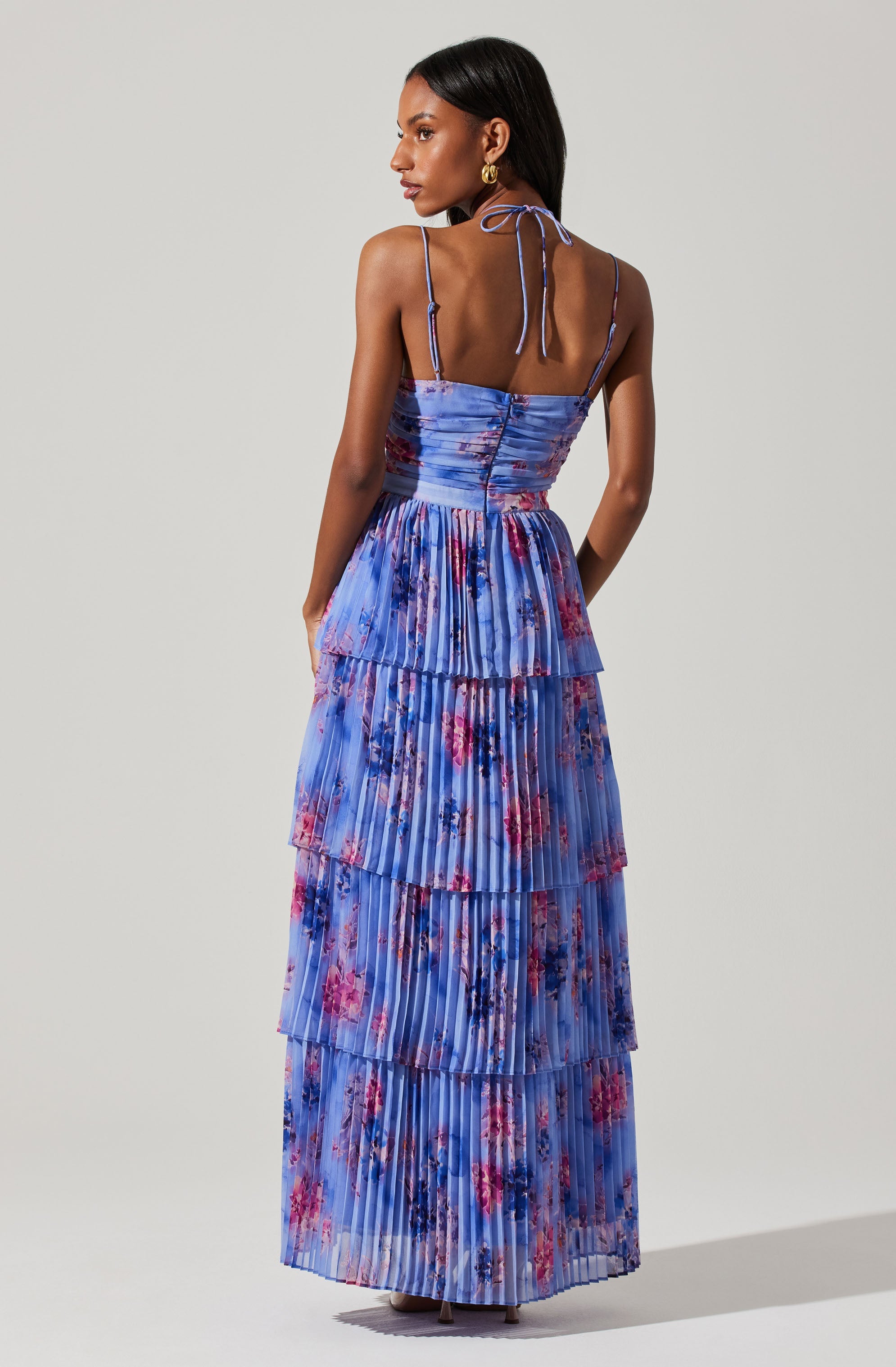 Pleated floral maxi dress