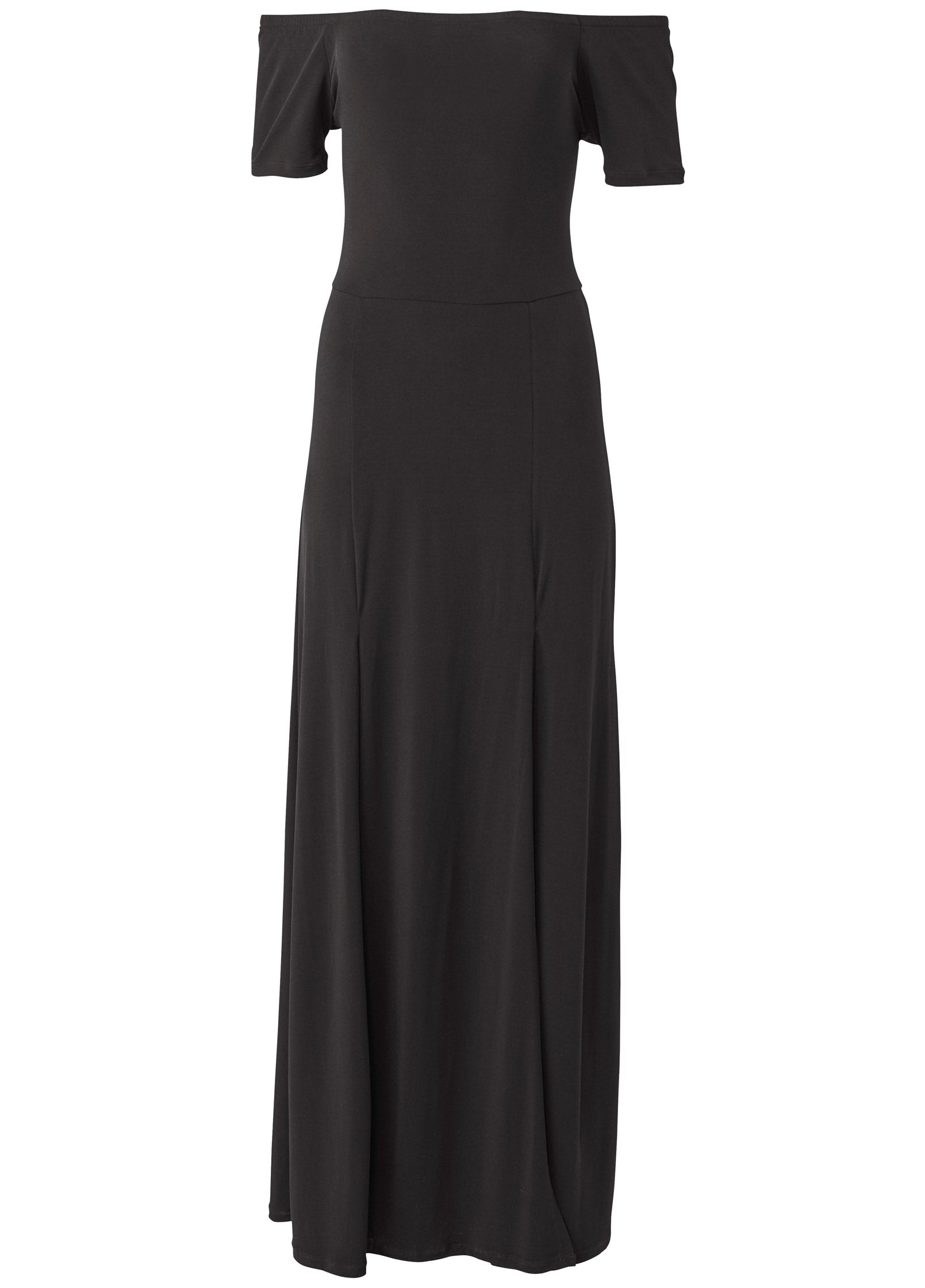 Dress in simple. easy elegance with this off the shoulder silhouette. Maxi length with two high slits at the front. this graceful look keeps you feeling breezy and looking beautiful through the spring and summer months.