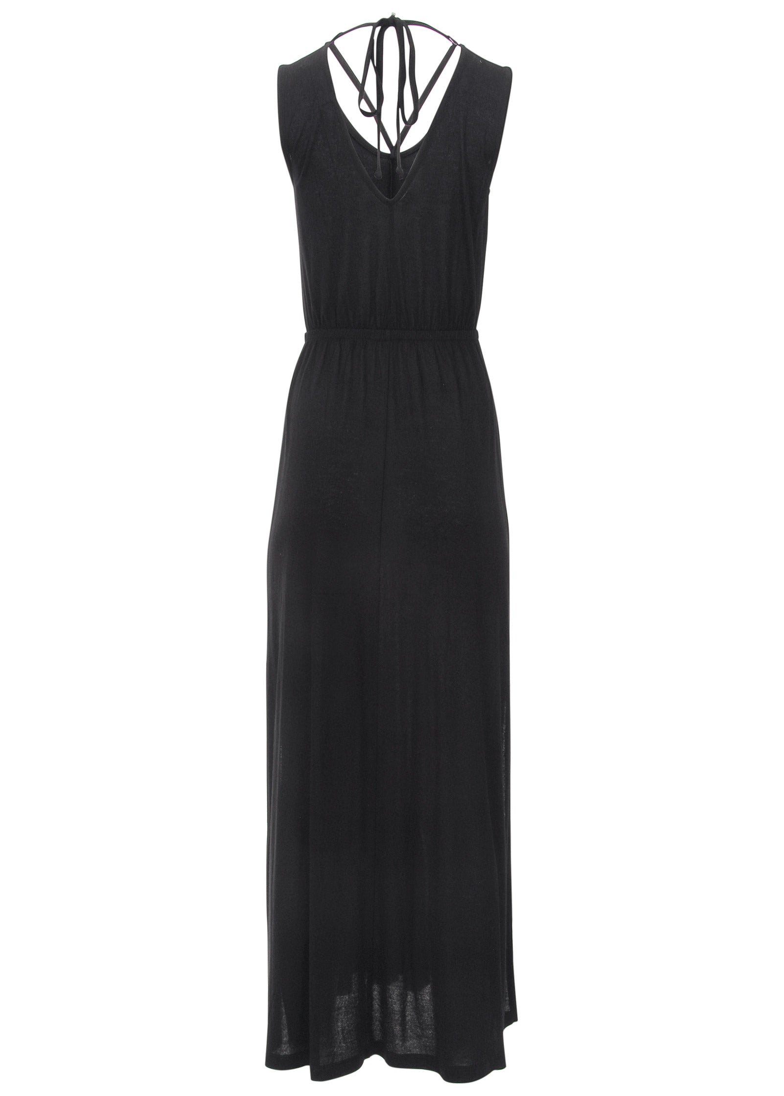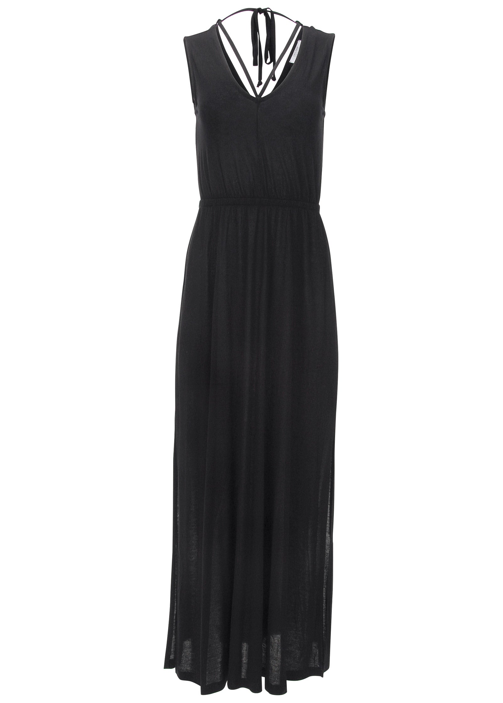 You're looking at the sultriest maxi dress you ever did see. Why? For starters. there's the strappy neckline that draws the eye right to your décolleté. Next up: the slits on either side of the skirt that rise to mid-thigh. showing off a peek of sunkissed legs underneath. For the grand finale. the unexpected V-back keeps all eyes on you. even as you walk away. * Sizes: XS (2). S (4-6). M (8-10). L (12-14). XL (16) * Sleeveless * Back tie closure * Elastic waist * Side slits * Unlined * 52" approx. length; varies by size * By Lascana for Aljck * Fabric has stretch * Viscose. Imported
