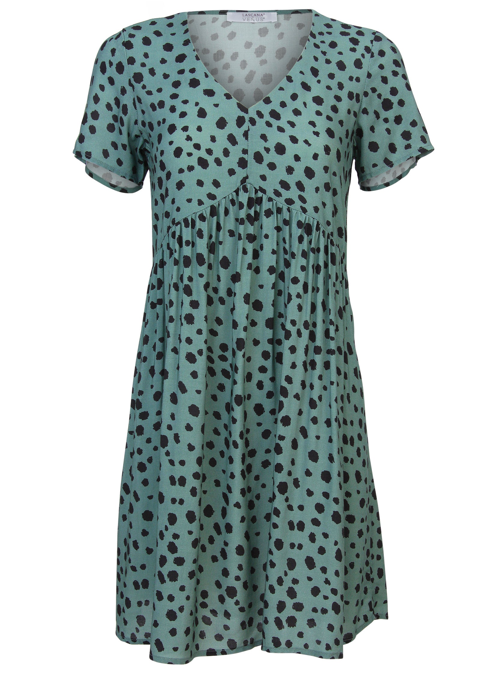 The occasion for wearing this mini dress: a sunny day. With its easy. empire-waist silhouette and casual feel. make it your warm-weather uniform.* Sizes: XS (2). S (4-6). M (8-10). L (12-14). XL (16)* V-neck* Short sleeves* Mini length* By Lascana for Aljck* Viscose. Imported
