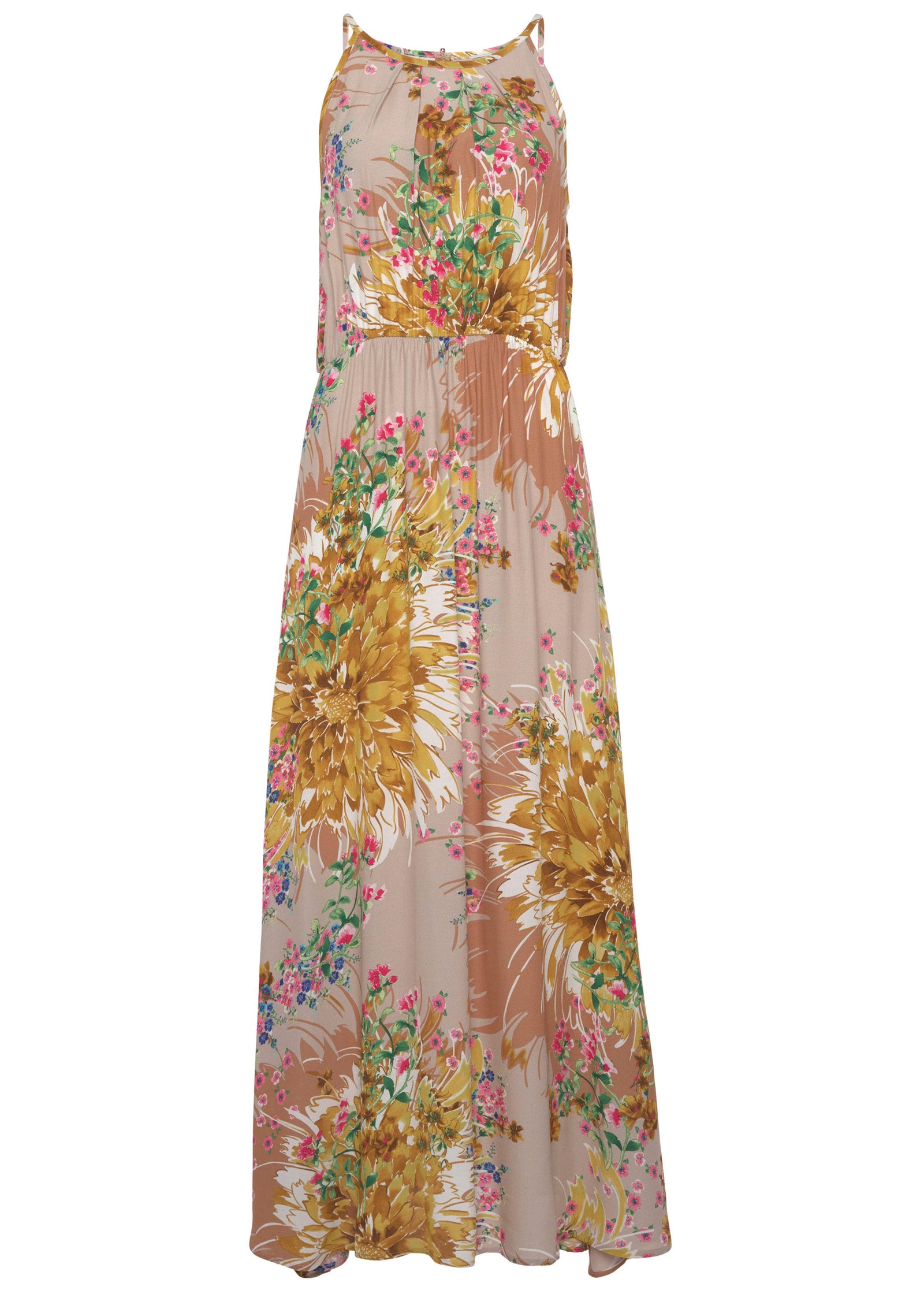 Floral. fabulous. and full of flow—this Floral Maxi Dress is your new go-to for effortless style. With a classic crew neckline and sleeveless design. this dress is all about easy. breezy vibes. The stretchy fabric hugs you in all the right places while letting you move freely. no matter where the day takes you. Pair it with flats for a laid-back look or elevate it with wedges or heels for a vacation date night that's sure to wow.* Crew neckline: Simple. classic. and always flattering.* Sleeveless design: Perfect for sunny days or layering with a light jacket.* Maxi length: Flows beautifully for a chic and effortless silhouette.* Stretch fabric: Comfort and flexibility for all-day wear.* By Lascana for Aljck* Viscose. Imported