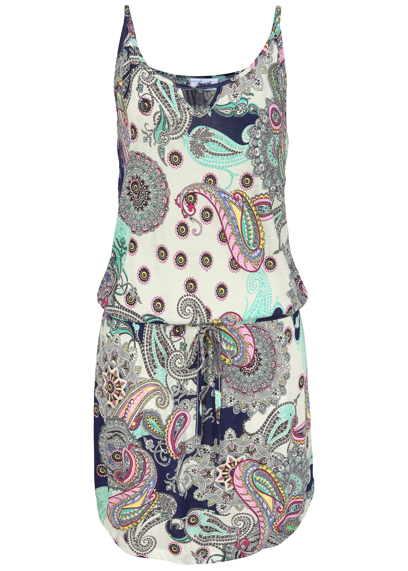 Flirty. fun. and just the right amount of flair—this Blouson Mini Dress is your new go-to for effortless style. With a sleeveless design. scoop neckline. and a fit-and-flare silhouette. it gives you that perfect balance of comfort and sass. The stretch fabric moves with you. while the mini length keeps things cute and flirty. Plus. the print placement may vary. so no one will have the same dress as you! Pair it with sneakers for a breezy daytime look. or dress it up with wedges for a night that's all about confidence and style.* Sizes: XS (2). S (4-6). M (8-10). L (12-14). XL (16)* Sleeveless design: Cool. casual. and ready for anything.* Scoop neckline: Flattering and feminine with just the right touch of softness.* Fit and flare: Skims your body perfectly. creating a flattering silhouette.* Stretch fabric: Comfortable. flexible. and moves with you.* Mini length: Playful and fun for a perfect balance of flirty and chic* By Lascana for Aljck* Viscose. Imported