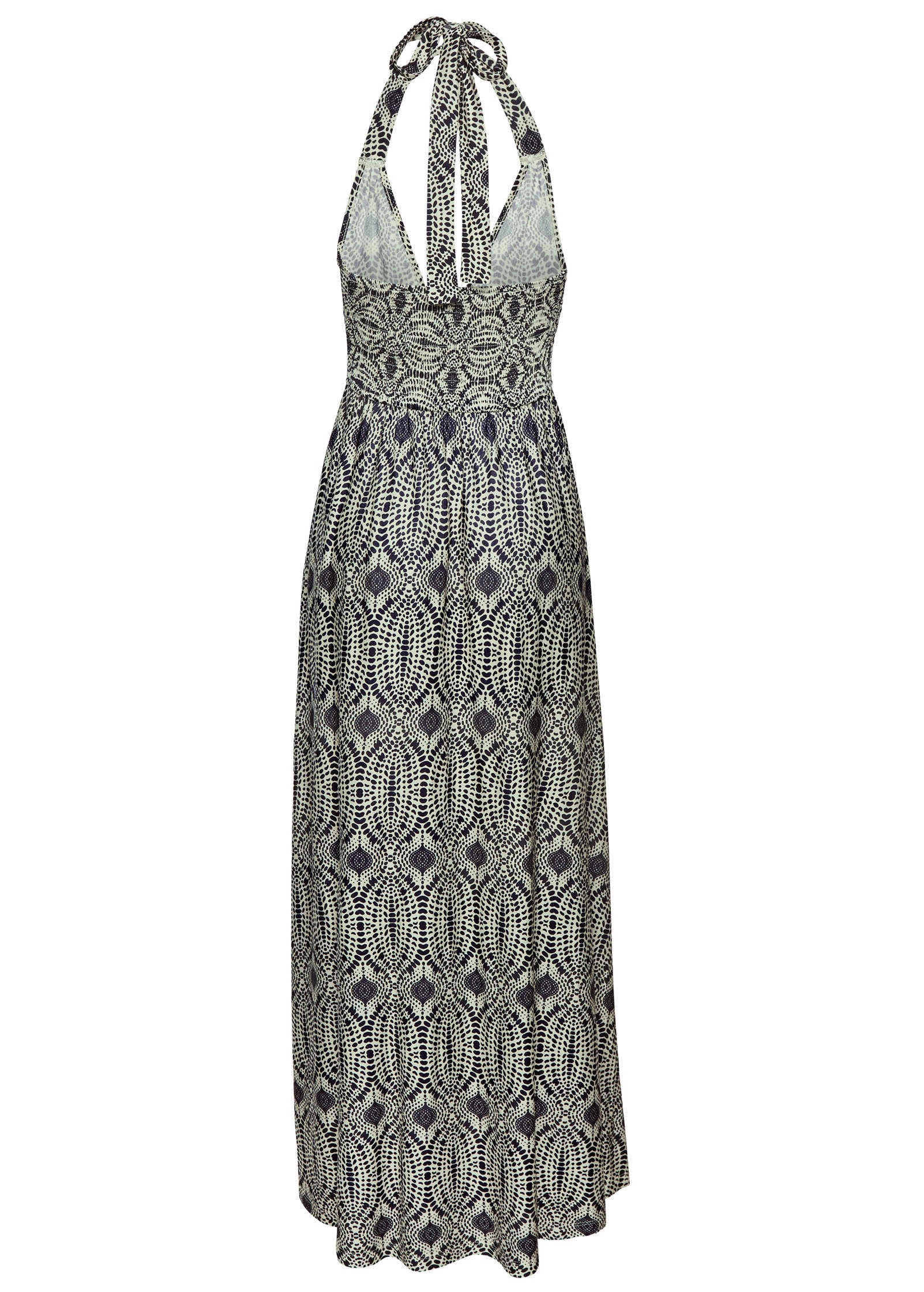 Turn heads with this stunning surplice printed maxi dress. designed to capture the essence of vacation vibes and effortless elegance. With a halter neckline. V-neckline. and a daring low back. this dress offers a flattering fit with an alluring twist.* Sizes: XS (2). S (4-6). M (8-10). L (12-14). XL (16)* Halter neckline: Adds a touch of sophistication and elegance.* V-neckline: Perfect for showing off your collarbone while keeping it chic.* Low back: Subtle yet sultry for an unforgettable look.* By Lascana for Aljck* Viscose. Imported