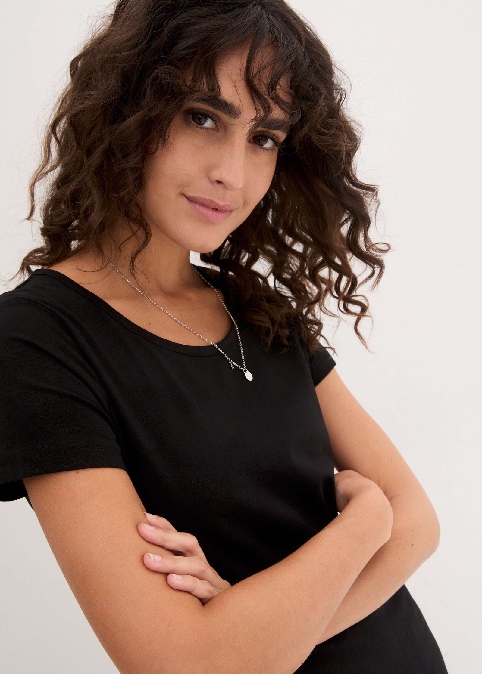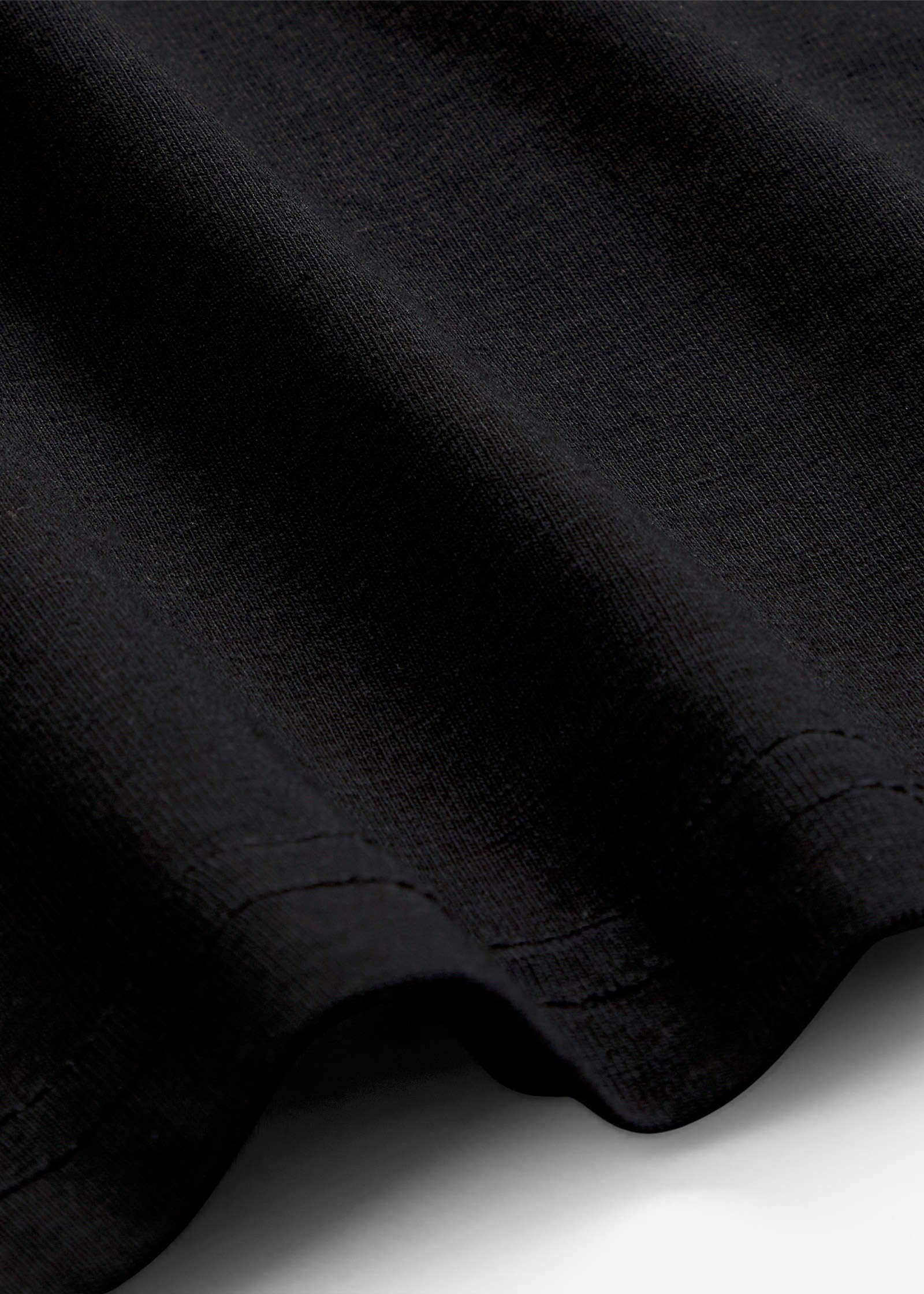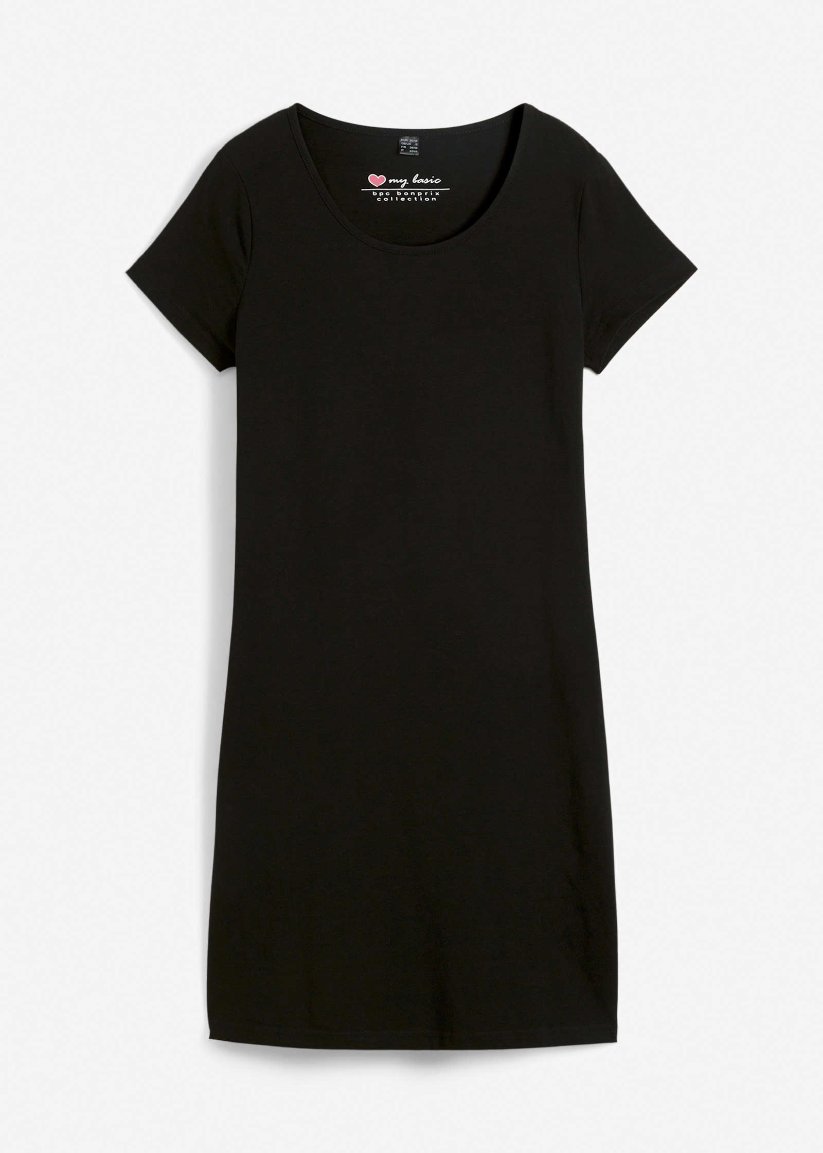 Keep it simple. sleek. and effortlessly chic with this jersey mini dress. The crew neckline and short sleeves make it a year-round go-to. perfect for easy styling. Just add sneakers and your favorite bag. then face whatever the day throws your way. * Sizes: XS (2). S (4-6). M (8-10). L (12-14). XL (16)* Crew neckline: Classic and flattering for all shapes.* Short sleeves: Perfect for layering or wearing solo in warmer weather.* Fabric has stretch* Cotton (organic)/elastane. Imported