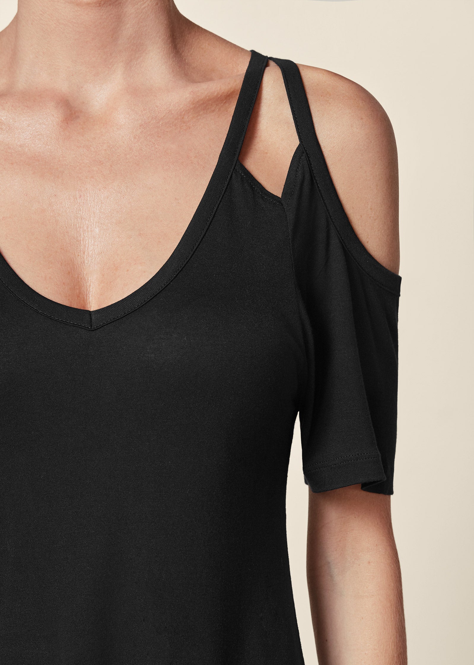 Keep it simple! Get back to basics in this fresh take on your favorite casual dress. Cut out straps complement cold shoulders for a unique take on a summer classic.