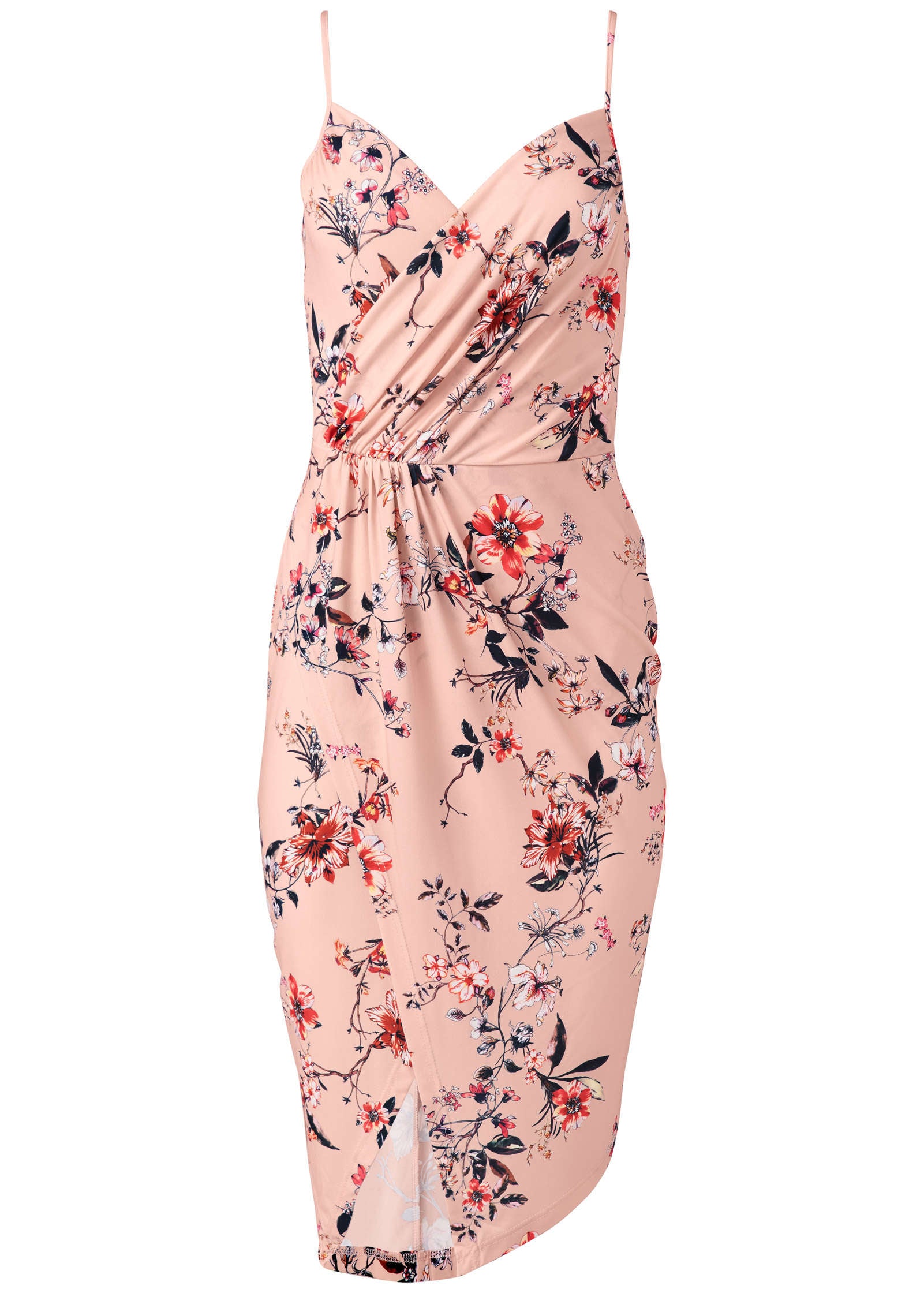 A strong yet delicate silhouette is yours when you choose this Floral Print Dress. The surplice styling at the neck and skirt is an instantly flattering choice. while the longer-in-the-back silhouette is offset by the asymmetrical front slit. Adjustable spaghetti straps create a smooth. supported look!* Sizes: XS (2). S (4-6). M (8-10). L (12-14). XL (16)