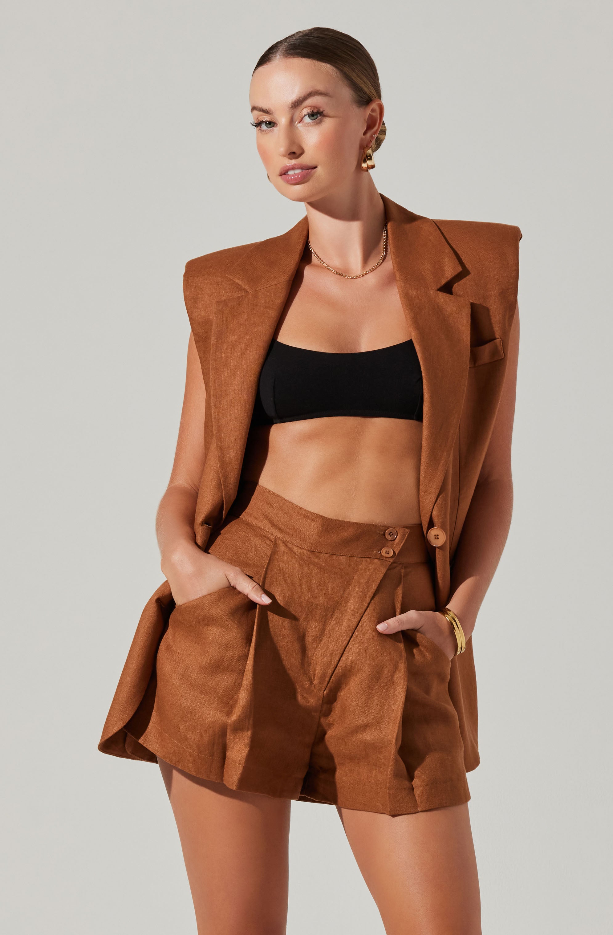 Pleated linen shorts