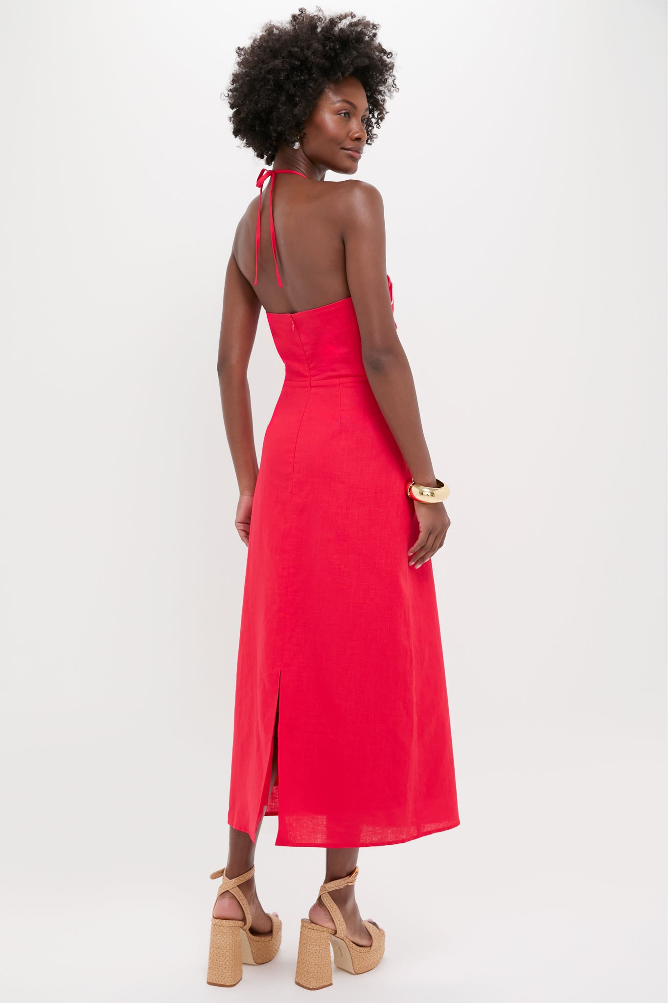The Poppy Red Florian Maxi Dress is a gorgeous dress for your next occasion. With a self-tie halter neckline. embroidered floral motif at the bust. and a slimming skirt with a back vent for ease. this dress is sure to please. Pair with raffia heels. a clutch. and chunky bangle for the perfect look every time!