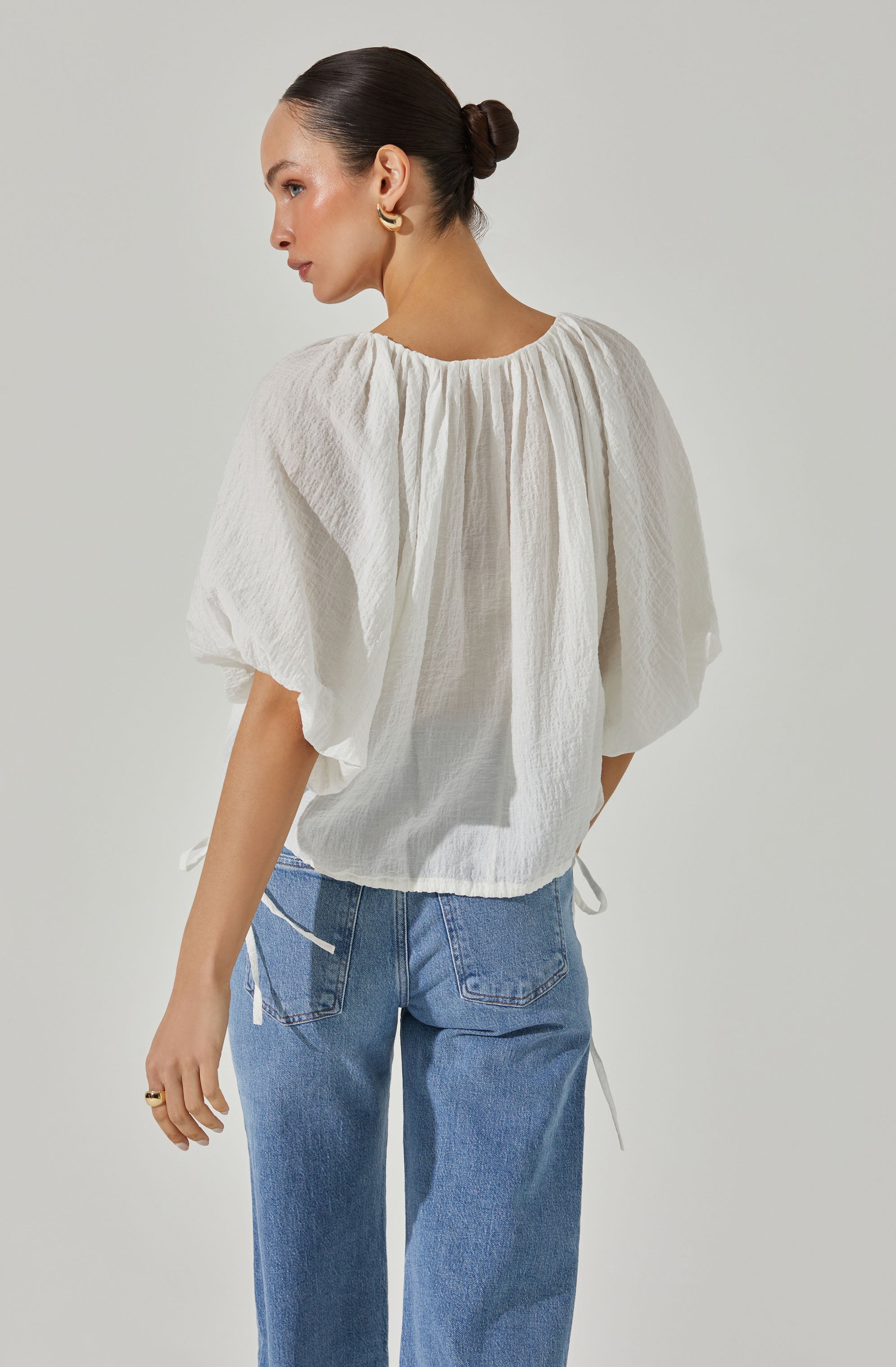 Side Tie Dolman V-neck Top