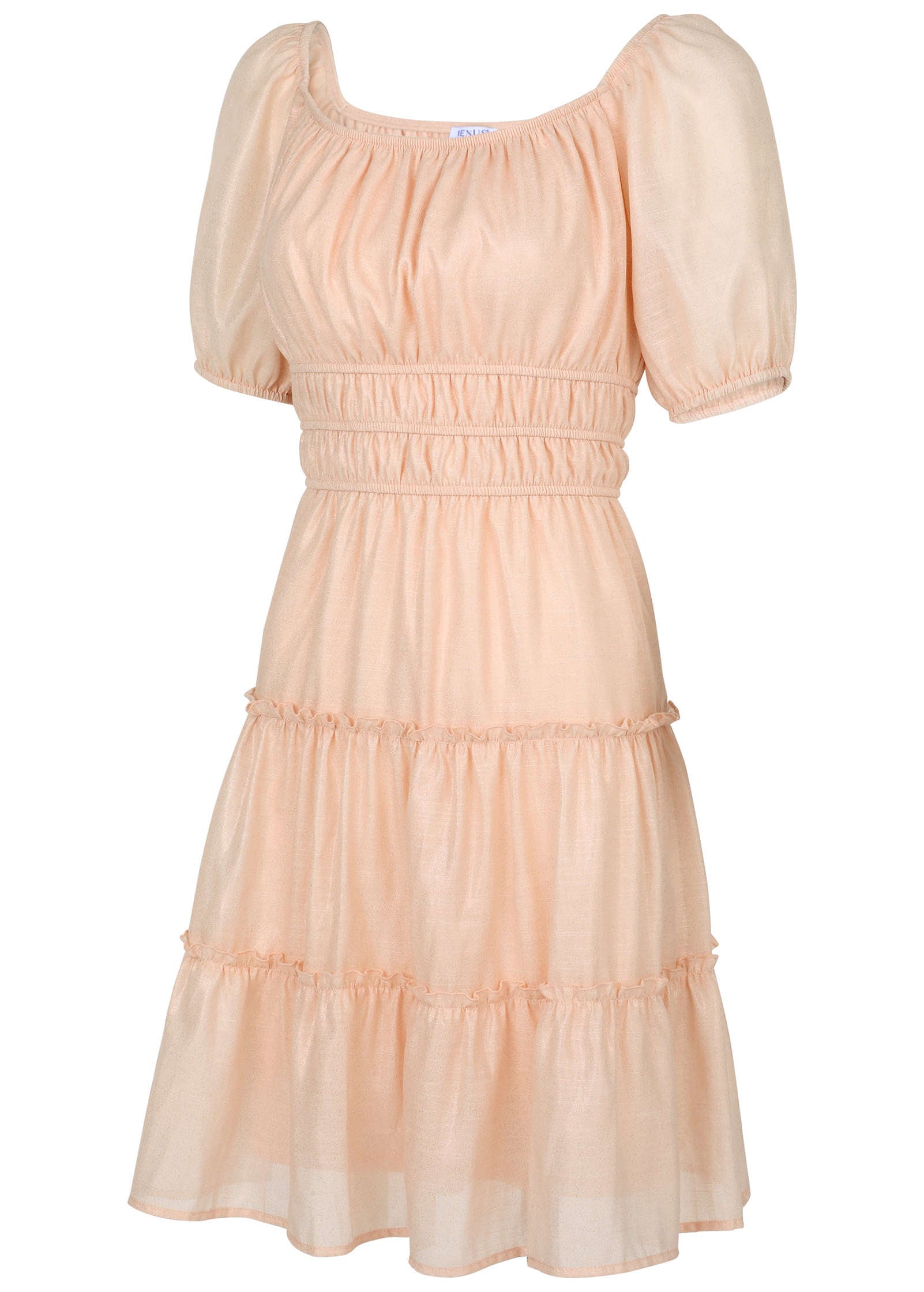 This tiered dress is made to flirt. twirl and bring all the femme energy. With a breezy tiered skirt. a flattering elastic waist. and a sweet tie-neck detail. this dress is all about effortless charm. Whether you're brunching. strolling. or dancing the night away. it's ready to make you look and feel fabulous.* Sizes: XS (2). S (4-6). M (8-10). L (12-14). XL (16)Scoop neckline: Classic and universally flattering.* Short sleeves: Easy. breezy. and perfect for warm days.* Tie neck detail: A playful. feminine touch.* Elastic waist: Defines your shape while keeping it comfy.* Tiered skirt: Flowy. fun. and made for twirling.* Versatile styling: Just add wedges and get ready to twirl!* Poly/spandex. Imported