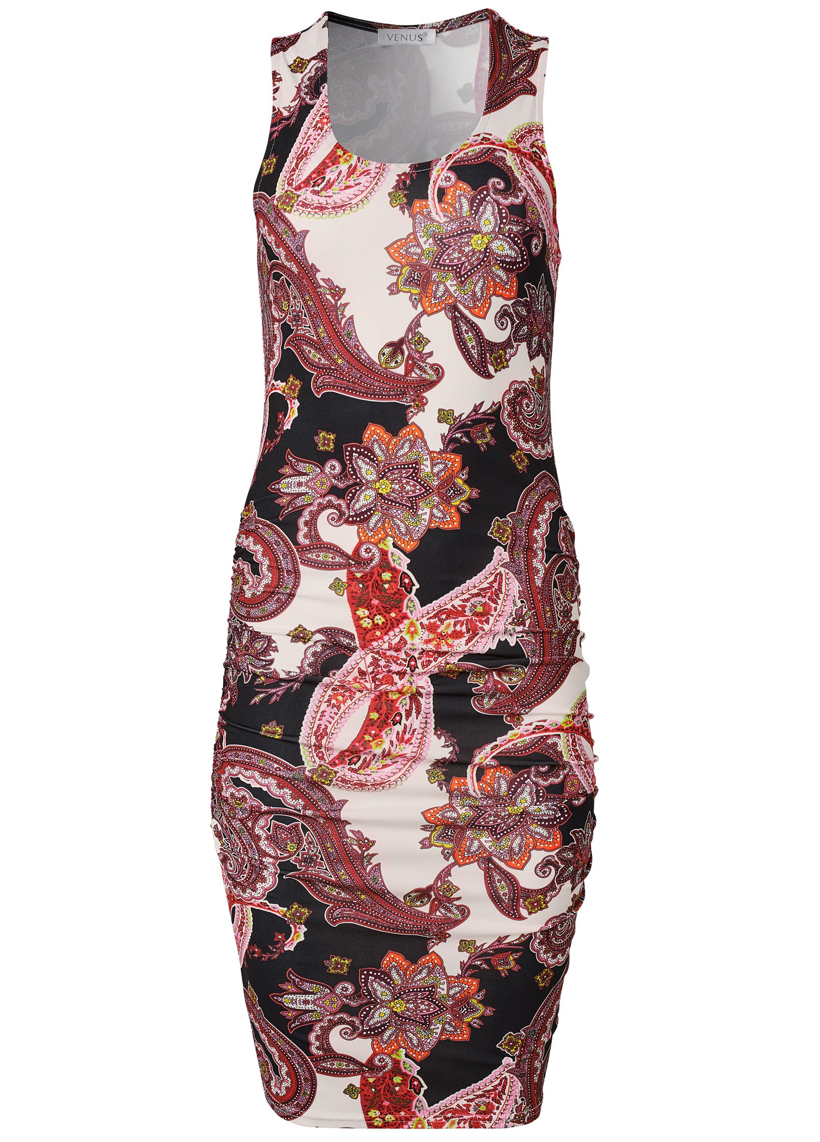 Say hello to our bestselling Ruched Tank Dress. now in bold. vivid prints just in time for warmer weather! Ruching along the middle flatters your figure. while the midi length and scoop neck design make this dress a versatile wardrobe staple.