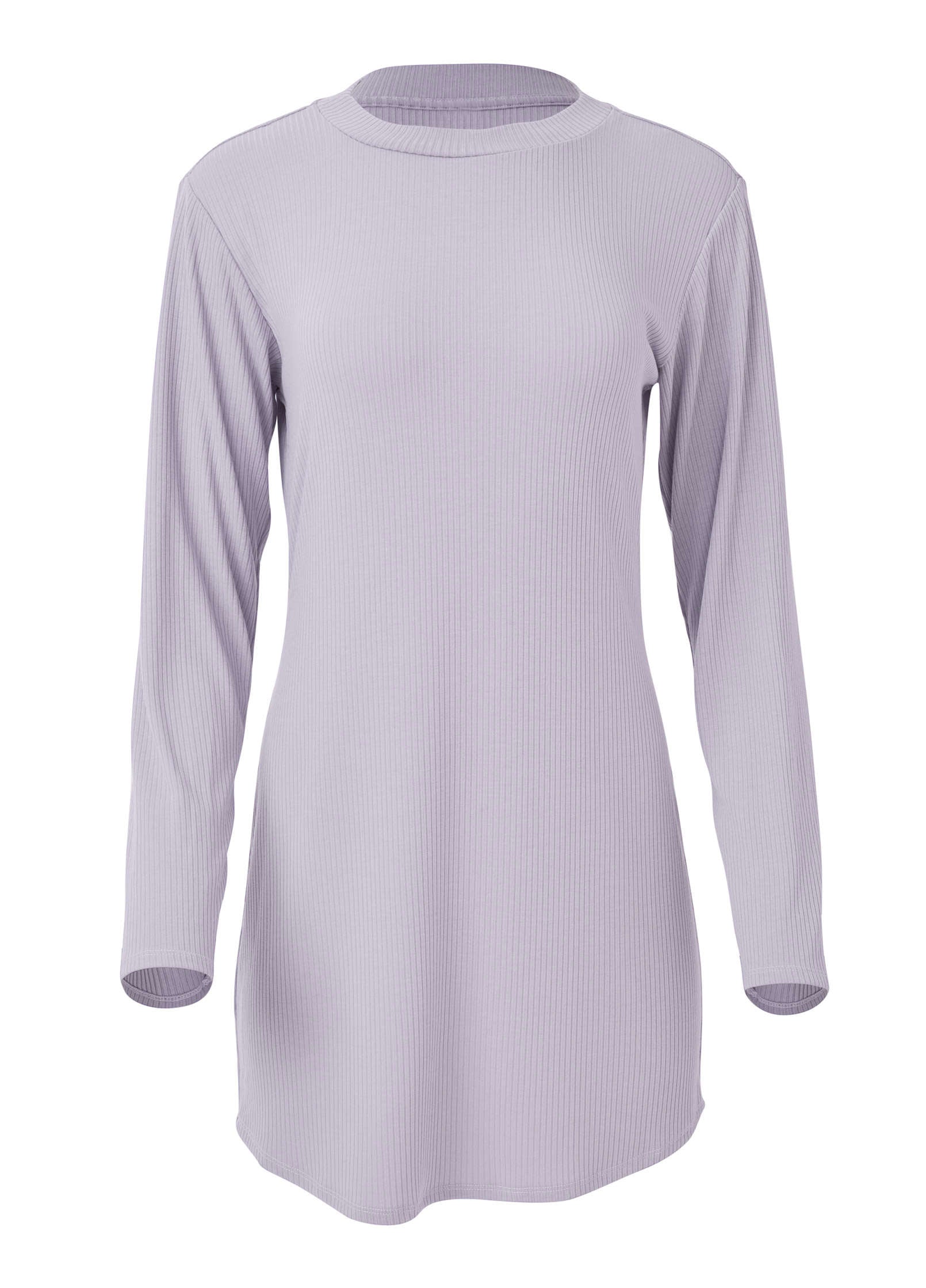 Shake things up with a touch of ribbed texture! Comfortably casual with its relaxed fit. this mini T-shirt dress almost feels like you're wearing jammies; it's that comfortable! Ribbing is THE look right now thanks to its versatility. and this dress does it in a way you won't want to take off.* Sizes: XS (2). S (4-6). M (8-10). L (12-14). XL (16) * Plus sizes: 1X (18-20). 2X (22-24). 3X (26-28)* Fabric has stretch* No closure* Crew neck* Long sleeves* 35" approx. length; varies by size* Poly/viscose/elastane. Imported