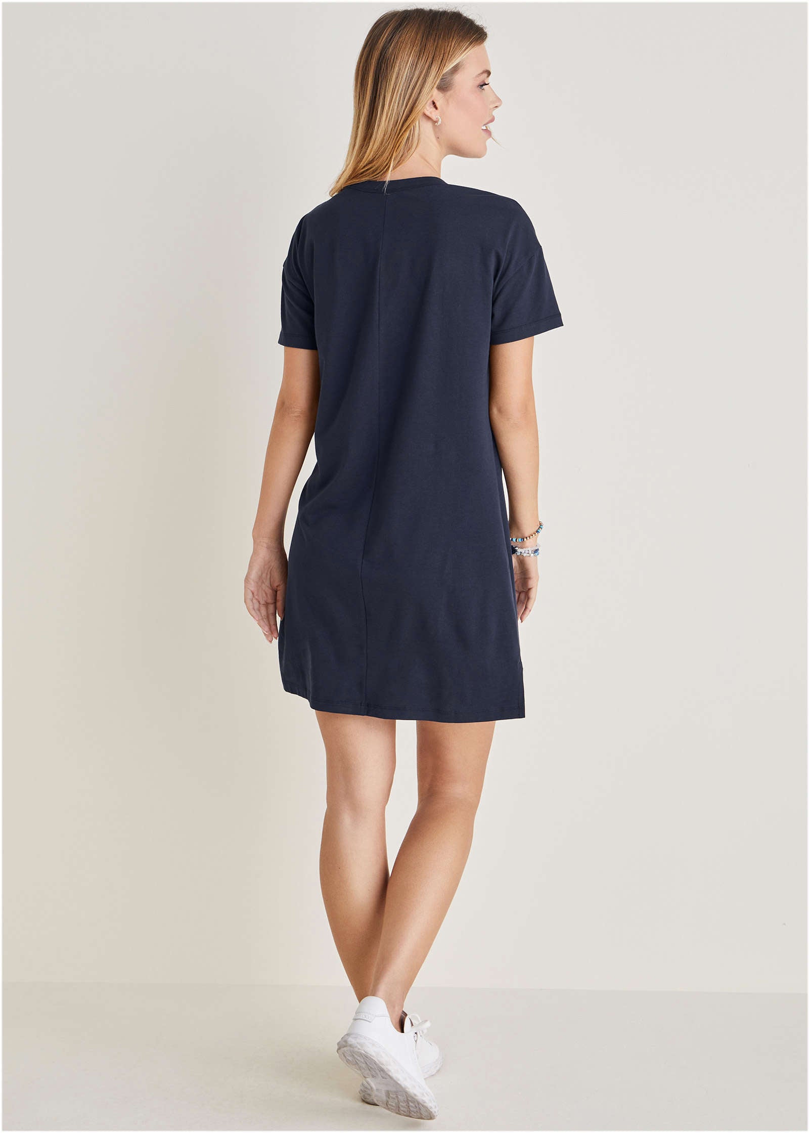 We went above and beyond to create the most perfect T-shirt dress out there. and boy oh boy did we outdo ourselves. The fit is relaxed yet flattering thanks to special details like drop-shoulder sleeves and a slightly longer step hem in back. Done in our 365 Cotton. it's lightweight but substantial. making it a wardrobe go-to all 365 days of the year. * Sizes: XS (2). S (4-6). M (8-10). L (12-14). XL (16) * Plus sizes: 1X (18-20). 2X (22-24). 3X (26-28) * Short sleeves * Mini length approx. 34" * Fabric has stretch * 365 Cotton (Cotton. CmiA/spandex. Imported)