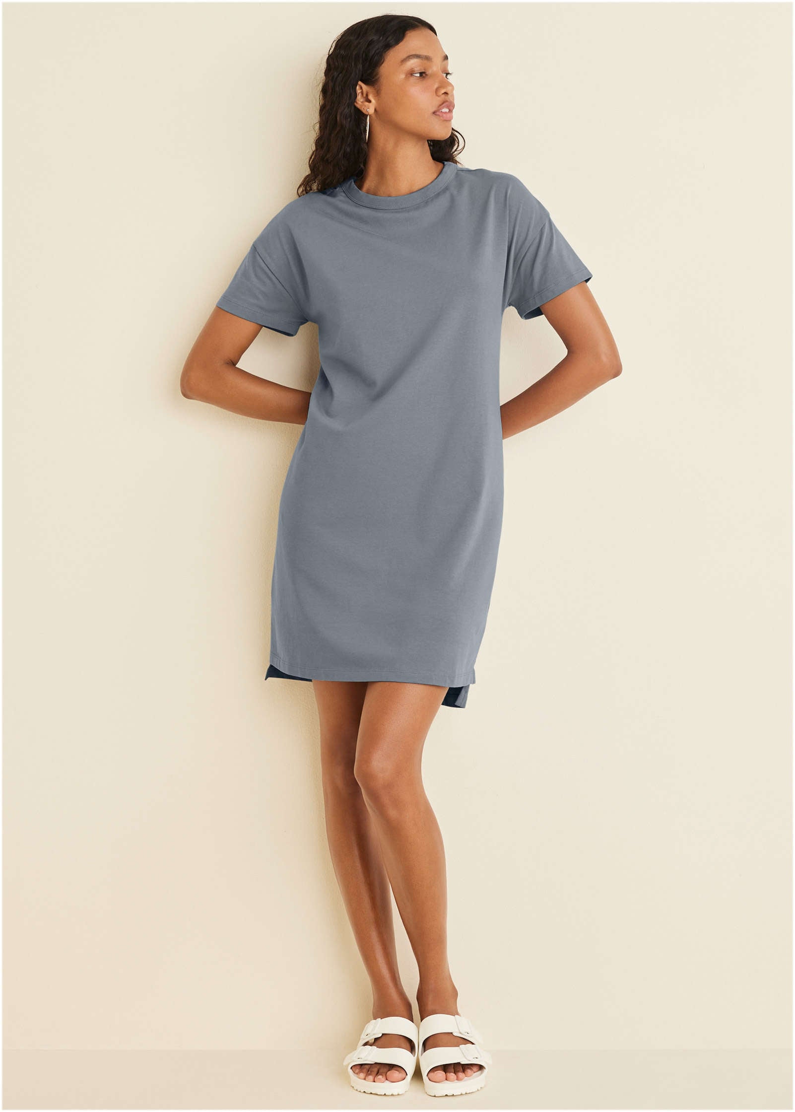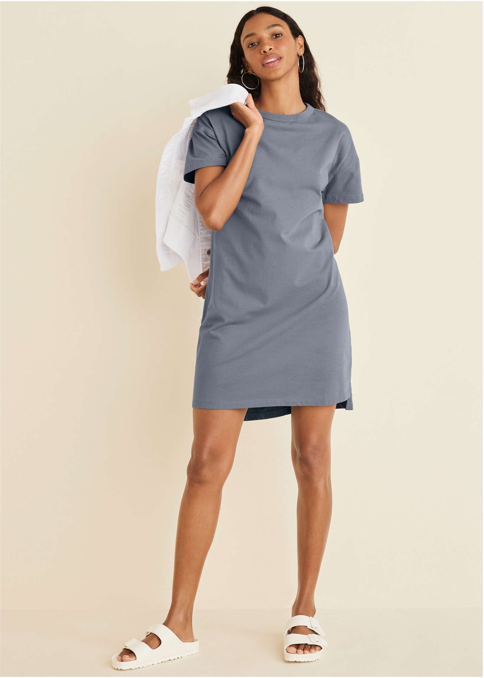 We went above and beyond to create the most perfect T-shirt dress out there. and boy oh boy did we outdo ourselves. The fit is relaxed yet flattering thanks to special details like drop-shoulder sleeves and a slightly longer step hem in back. Done in our 365 Cotton. it's lightweight but substantial. making it a wardrobe go-to all 365 days of the year. * Sizes: XS (2). S (4-6). M (8-10). L (12-14). XL (16) * Plus sizes: 1X (18-20). 2X (22-24). 3X (26-28) * Short sleeves * Mini length approx. 34" * Fabric has stretch * 365 Cotton (Cotton. CmiA/spandex. Imported)