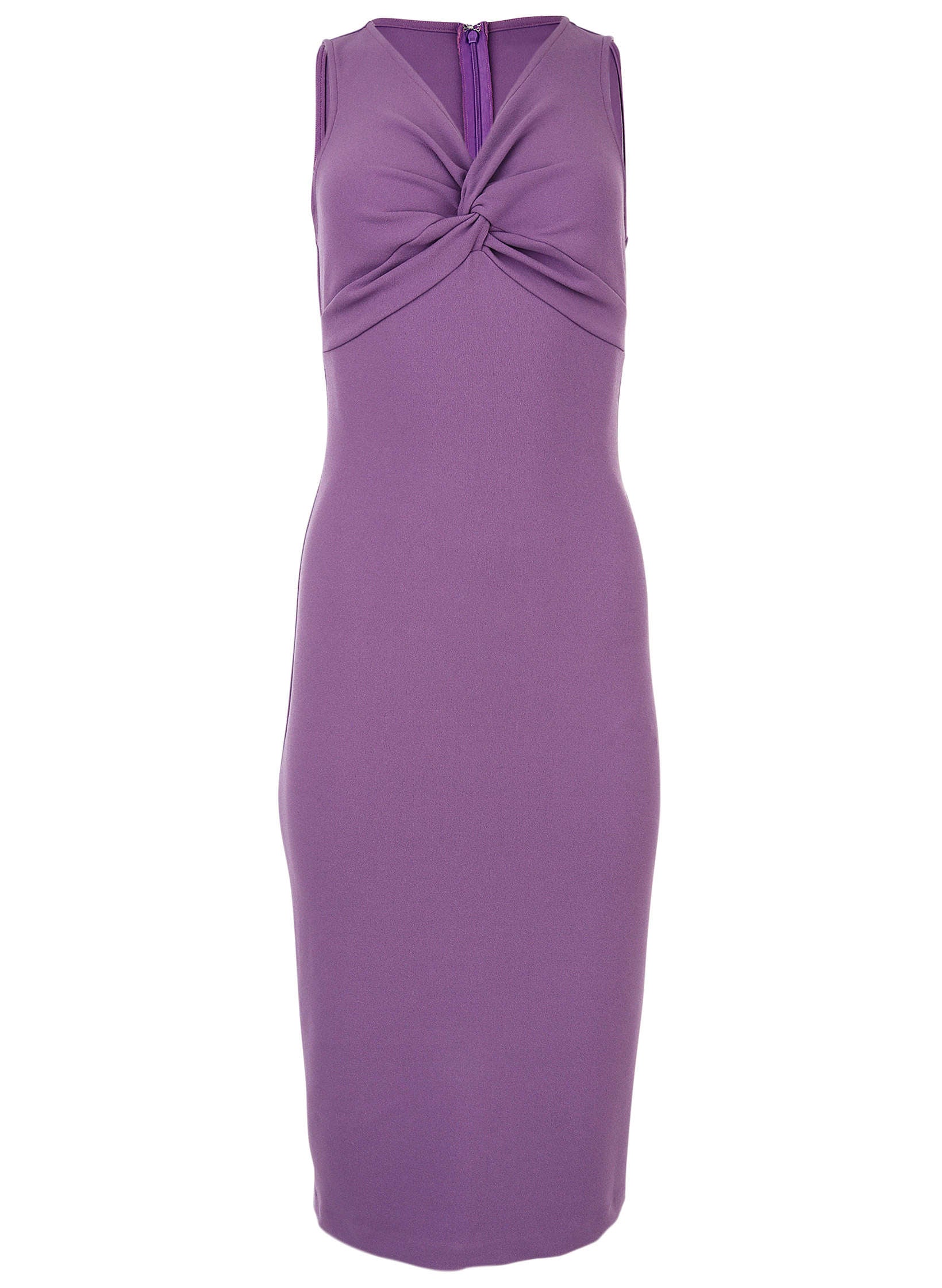 Yes. you can and definitely should wear this dress over and over again. It's not one of those pieces you get photographed in once and suddenly can't be seen in again. On the contrary. this fitted midi dress flatters in a way that deserves lots of play time—weddings. date nights. you name it. The twisted bodice is a unique detail that adds intrigue. but is timeless enough to earn closet-classic status. * Sizes: XS (2). S (4-6). M (8-10). L (12-14). XL (16) * Plus sizes: 1X (18-20). 2X (22-24). 3X (26-28) * Sleeveless * Midi length approx. 44" * Invisible back zipper closure * Polyester/elastane. Imported
