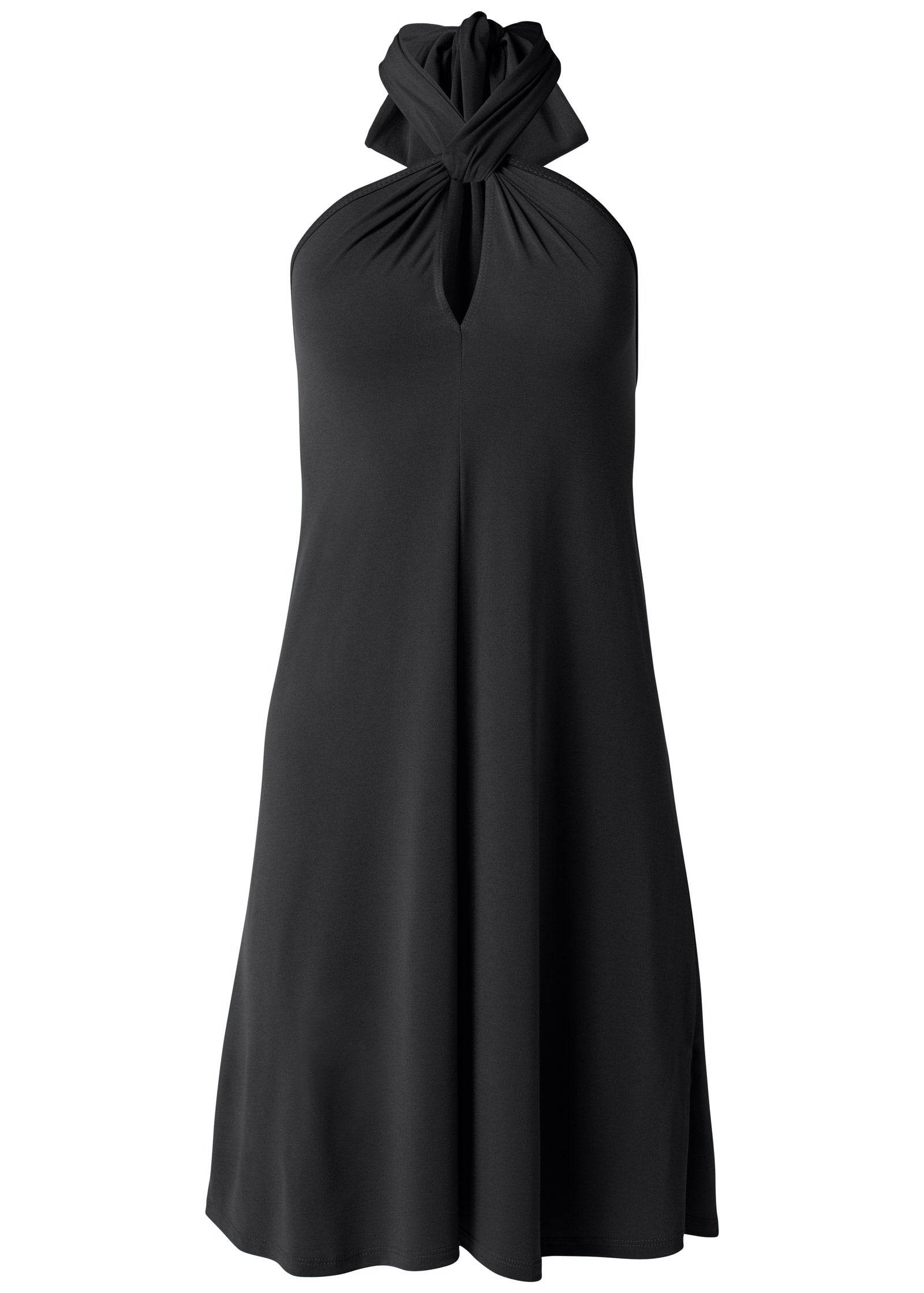 You're looking at the quintessential sunny-day dress. The twisted halter neckline is perfect for showing off sunkissed shoulders and also draws attention to the small keyhole detail underneath. This swingy mini dress has an effortless drape and easy. breezy silhouette that makes it a warm-weather must. * Sizes: XS (2). S (4-6). M (8-10). L (12-14). XL (16) * 31" approx. length; varies by size * Fabric has stretch * Unlined * Sleeveless * No closure * A-line * Recycled poly/elastane. Imported.