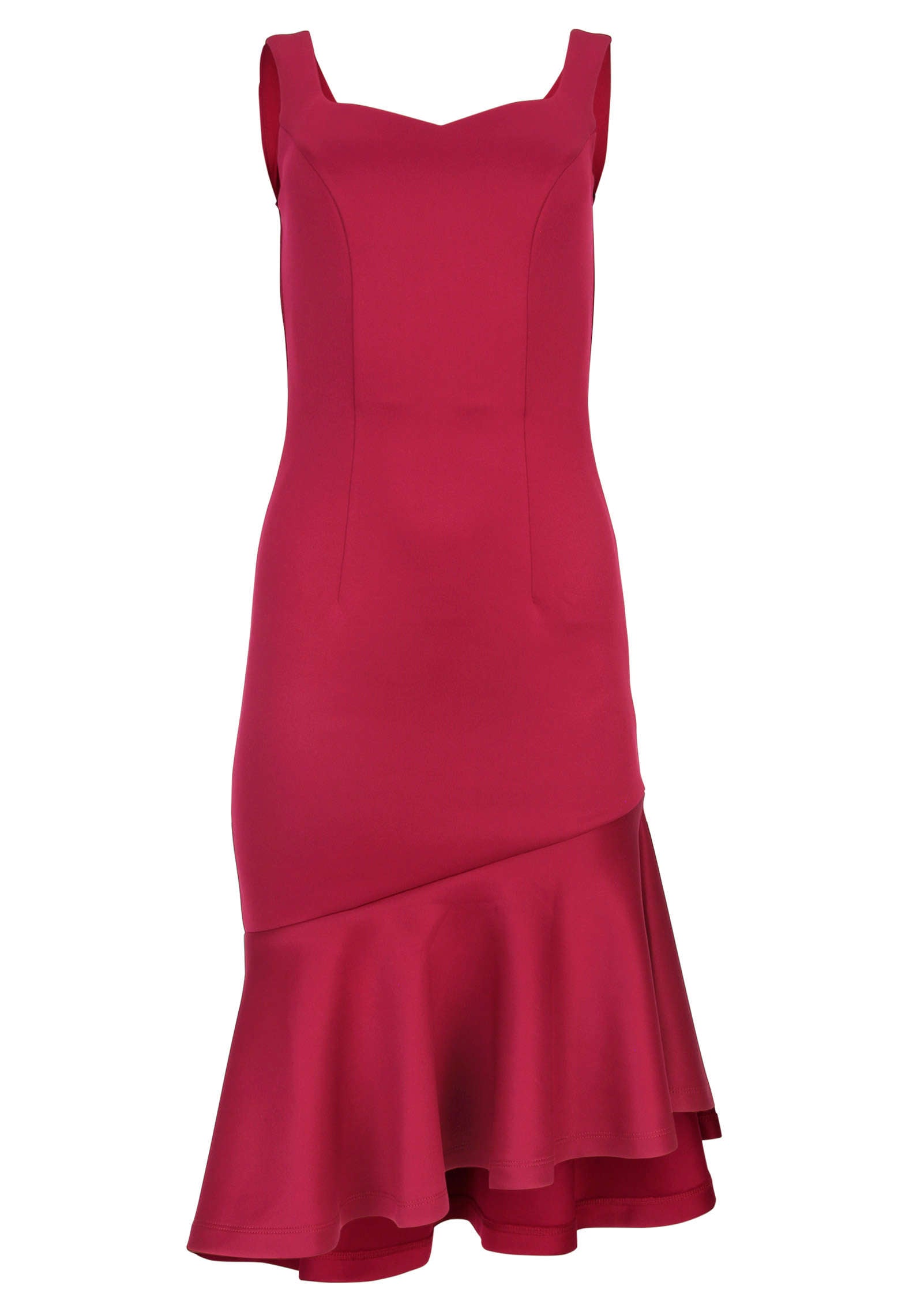 Perfect for a variety of occasions from brunch dates to weddings. this dress effortlessly transitions from day to night. Done in our double-knit CloudSoft Scuba fabric. it's structured yet stretchy (read: comfy!) and has a smooth. sleek look. flattering from top to bottom. Featuring a sweetheart neckline and asymmetric ruffled hem. this midi will have you looking and feeling like your best self.* Sizes: XS (2). S (4-6). M (8-10). L (12-14). XL (16)* Plus sizes: 1X (18-20). 2X (22-24). 3X (26-28)* Available in petite sizes* Midi length; From shoulder: Missy: 38" to shortest point. 42.5" to longest; Petite: 36" to shortest point. 40.5" to longest* Sleeveless* Invisible back zipper closure* Midi length* CloudSoft Scuba (Polyester/spandex. Imported)