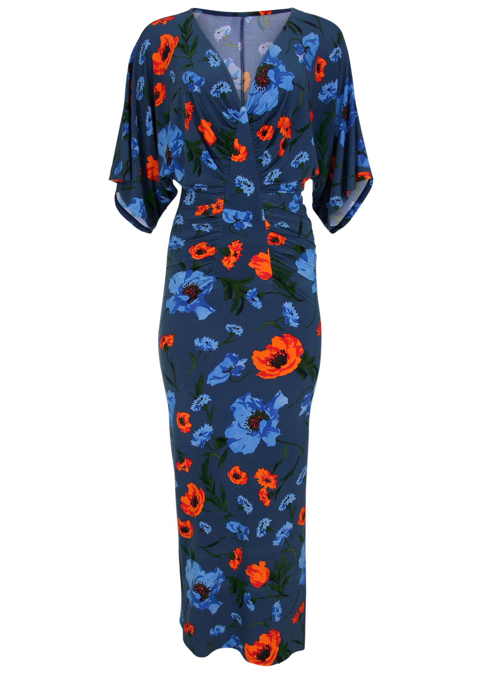 Drape Sleeve Maxi Dress - Forest Floral Iris