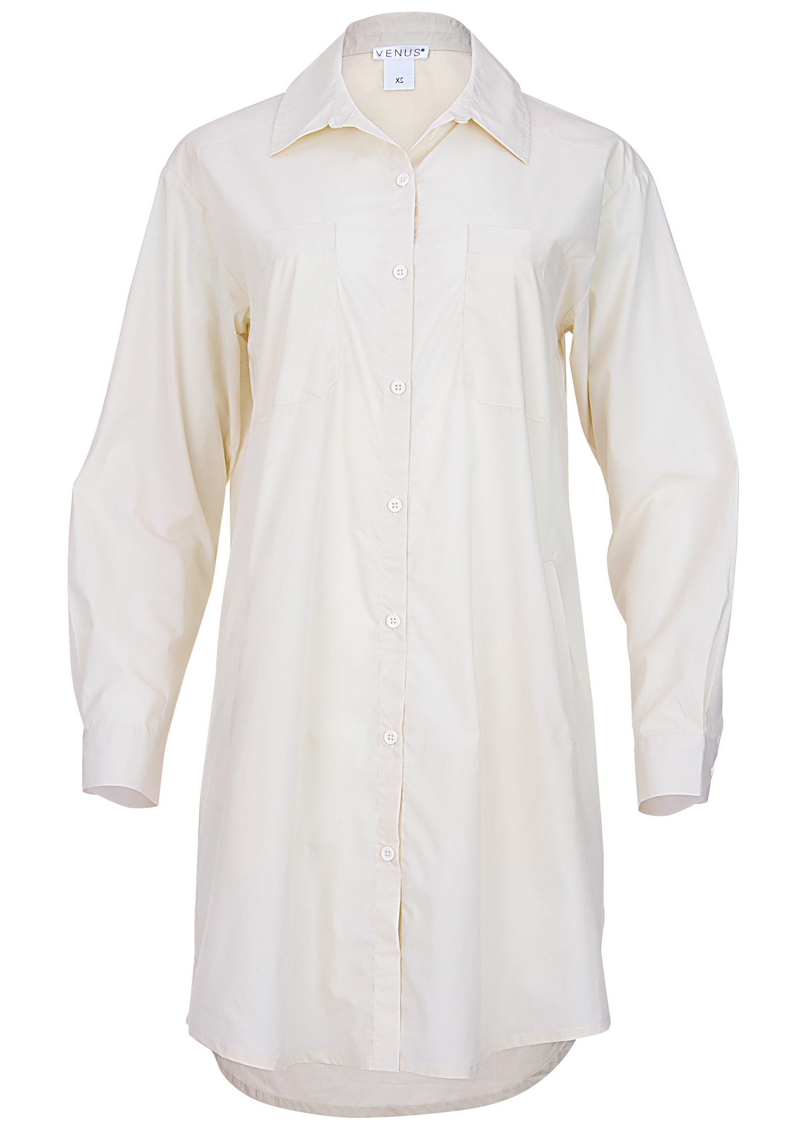 We perfected the wardrobe staple shirt dress. Done in our Clean Cut Cotton fabric. this one is lightweight yet durable and has a crisp. cool-to-the-touch feel. Consider it the blank canvas of your closet: go casual with sneakers. classic with a trench coat. dress it up with bold extras and heels. or even toss it over a bikini as a cover-up. The options are endless.* Sizes: XS (2). S (4-6). M (8-10). L (12-14). XL (16)* Plus sizes: 1X (18-20). 2X (22-24). 3X (26-28)* Collared neckline* Long sleeves* Button front* Chest pockets* Approx. 36" from shoulder* Unlined * Clean Cut Cotton (Cotton: CmiA. Imported)