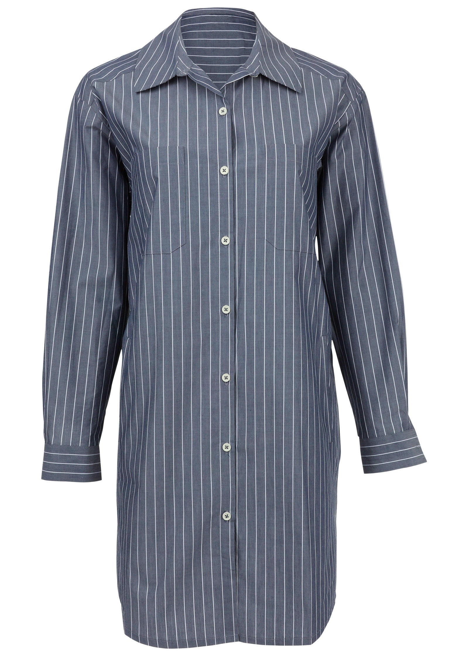 We perfected the wardrobe staple shirt dress. Done in our Clean Cut Cotton fabric. this one is lightweight yet durable and has a crisp. cool-to-the-touch feel. Consider it the blank canvas of your closet: go casual with sneakers. classic with a trench coat. dress it up with bold extras and heels. or even toss it over a bikini as a cover-up. The options are endless.* Sizes: XS (2). S (4-6). M (8-10). L (12-14). XL (16)* Plus sizes: 1X (18-20). 2X (22-24). 3X (26-28)* Collared neckline* Long sleeves* Button front* Chest pockets* Approx. 36" from shoulder* Unlined * Clean Cut Cotton (Cotton: CmiA. Imported)