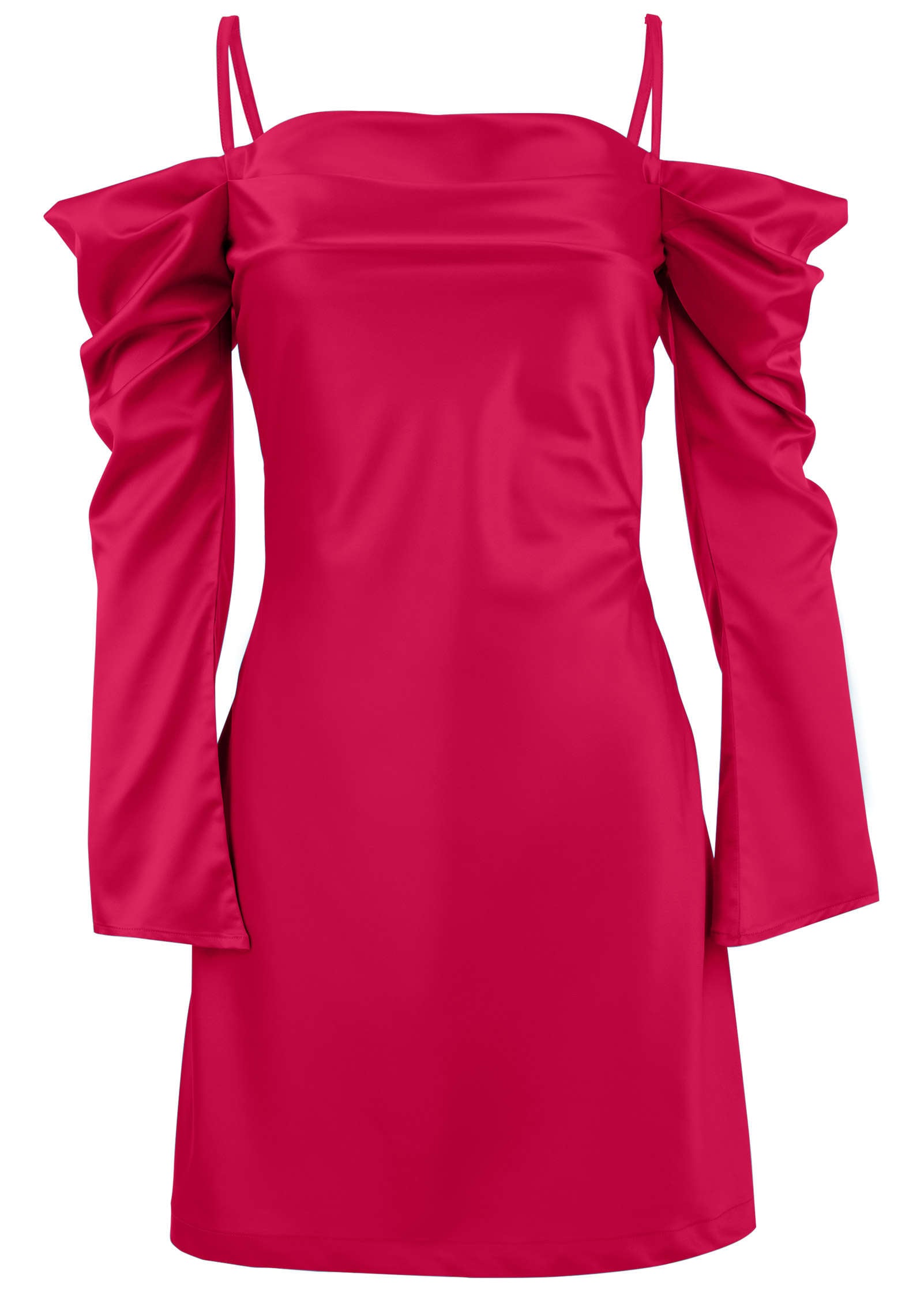 This mini dress is a charmer. Up top it has delicate spaghetti straps. a romantic cowl neckline and flirty long sleeves. Below. a sleek silhouette and mini hemline make a bold. leg-highlighting statement. Done in our EffortLuxe fabric. it has a silky feel. subtle sheen and gorgeous drape with just a hint of stretch for comfort. Oh. and it doesn't wrinkle so it ALWAYS looks this good. * Available in plus sizes * Adjustable spaghetti straps * Cold-shoulder styling * Cowl neckline * Long sleeves * Mini length approx. 29" * Invisible back zipper closure * Partially lined * EffortLuxe (Poly/spandex. Imported)